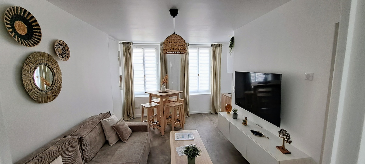 Bienvenue à L’Escale Cherbourgeoise ! Ambiance bohème pour cet appartement plein de charme et cosy de 40m², idéalement situé en hyper centre. Entièrement rénové et équipé à neuf, il est parfait pour 4 à 6 personnes. Proche du port, la mairie et de tous commerces. 15min à pieds de la gare et de la cité de la mer 10min de Naval Group et DCNS Le stationnement dans la rue est gratuit. Parking du port gratuit à 200m. Arrivée/départ 24h/24