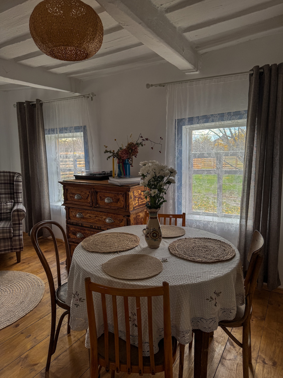 We love to receive guests bcs we travel a lot ourselves. ... We inherited the house from our grandmother. Made of clay and wood, it is warm in winter and cool in summer. Our House is for those who want silence, the murmur of the river, fresh air and delicious rural food. This is a big city detox. I am a professional guide and I ll organize excursions, outdoor activities and unusual walks. If you want to sculpt from clay, draw, play musical instruments, and even weave, then you should come to us!