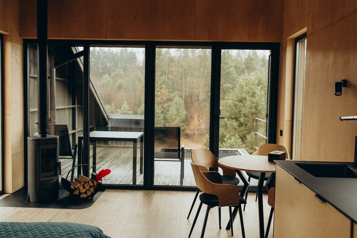 Будиночок #8 в комплексі заміського відпочинку ТРОХИ ДАЛІ Будиночок-студія, все в одному просторі. В будиночку є камін, обладнана смарт-кухня (також можна замовити сніданки/вечері), ліжко queen size, обідня зона, диван, вбудований гамак та меблі на терасі. Біля будиночку - власна мангальна зона. Будиночки для відпочинку ТРОХИ ДАЛІ - куточок спокою серед сосен, у тиші, на березі мальовничого озера. Все для комфортного відпочинку або віддаленої роботи. 100% pet-friendly без обмежень та доплат