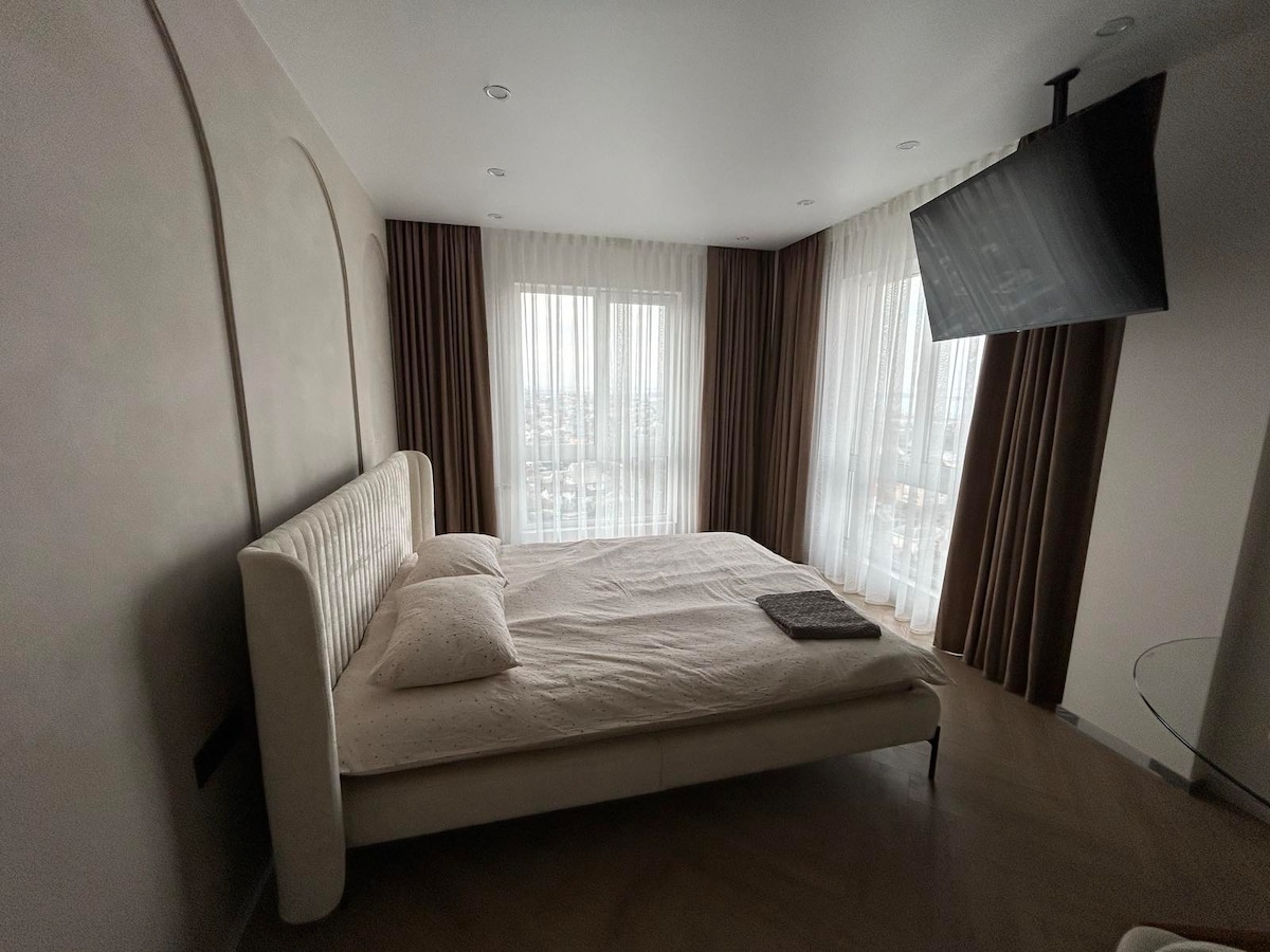 Наші апартаменти – ідеальне місце для тих, хто цінує комфорт, стиль і близькість до міської метушні. Вони виконані в мінімалістичному стилі, що створює атмосферу простору та спокою. Зручне розташування дозволяє швидко дістатися до центру міста, а безкоштовна приватна парковка для гостей робить перебування ще більш комфортним. Зручності: -Wifi -Великий Телевізор, - Безкоштовний паркінг - Прибирання як у готелі - обладнана кухня з посудом - кондиціонер - Ванна кімната з готельними зручностями