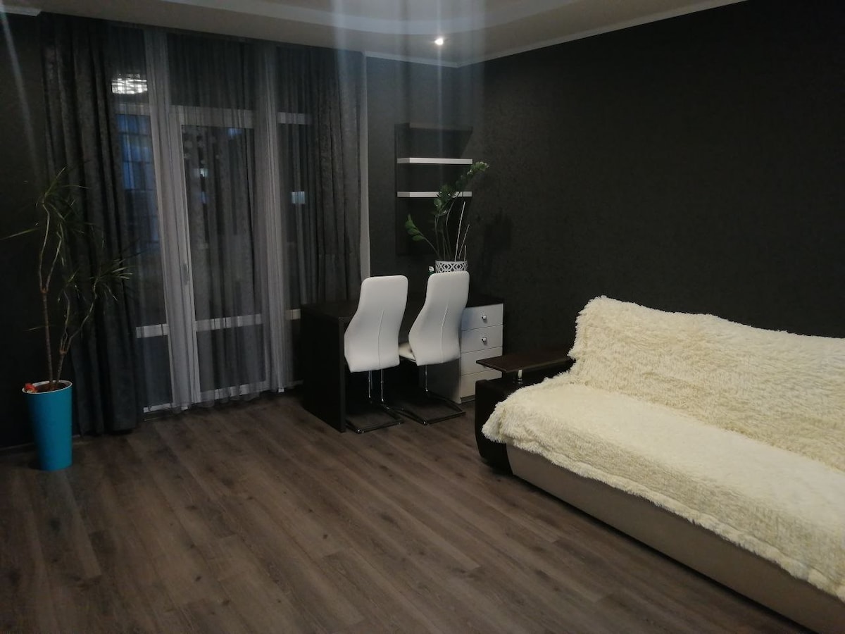 Квартира в доме бизнес класса. Стильный ремонт в светлых тонах. Укомплектована всей необходимой техникой для комфортной Отлично подходит как для отдыха так и для бизнес поездки. В доме расположены три ресторана (европейской, итальянской и средиземноморской кухни); спорт зал; охраняемая парковка. Через дорогу от дома в 2х минутах пешей прогулки большой супермаркет “Novus”. В 5 минутах ходьбы ТЦ «Комод» в котором есть современный кинотеатр Multiplex. До МВЦ 200 метров.