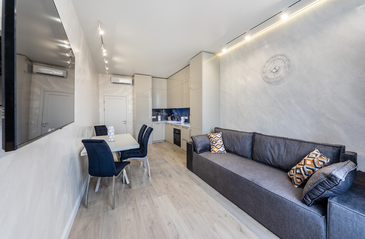Отдельная квартира, в 33 этажном здании в новом доме. Интерьер спроектирован дизайнером. Квартира оборудована всем необходимым для жизни, есть полноценная кухня, посудомоечная машина, плита, духовка, холодильник, ( чайник, кофе, чай, столовые приборы, кастрюля и сковорода)стиральная машина. Быстрый WIFI, доступен гостям. Кодовый доступ в апартаменты. Все сделано из качественных материалов и наполнен электротехникой европейских брендов.