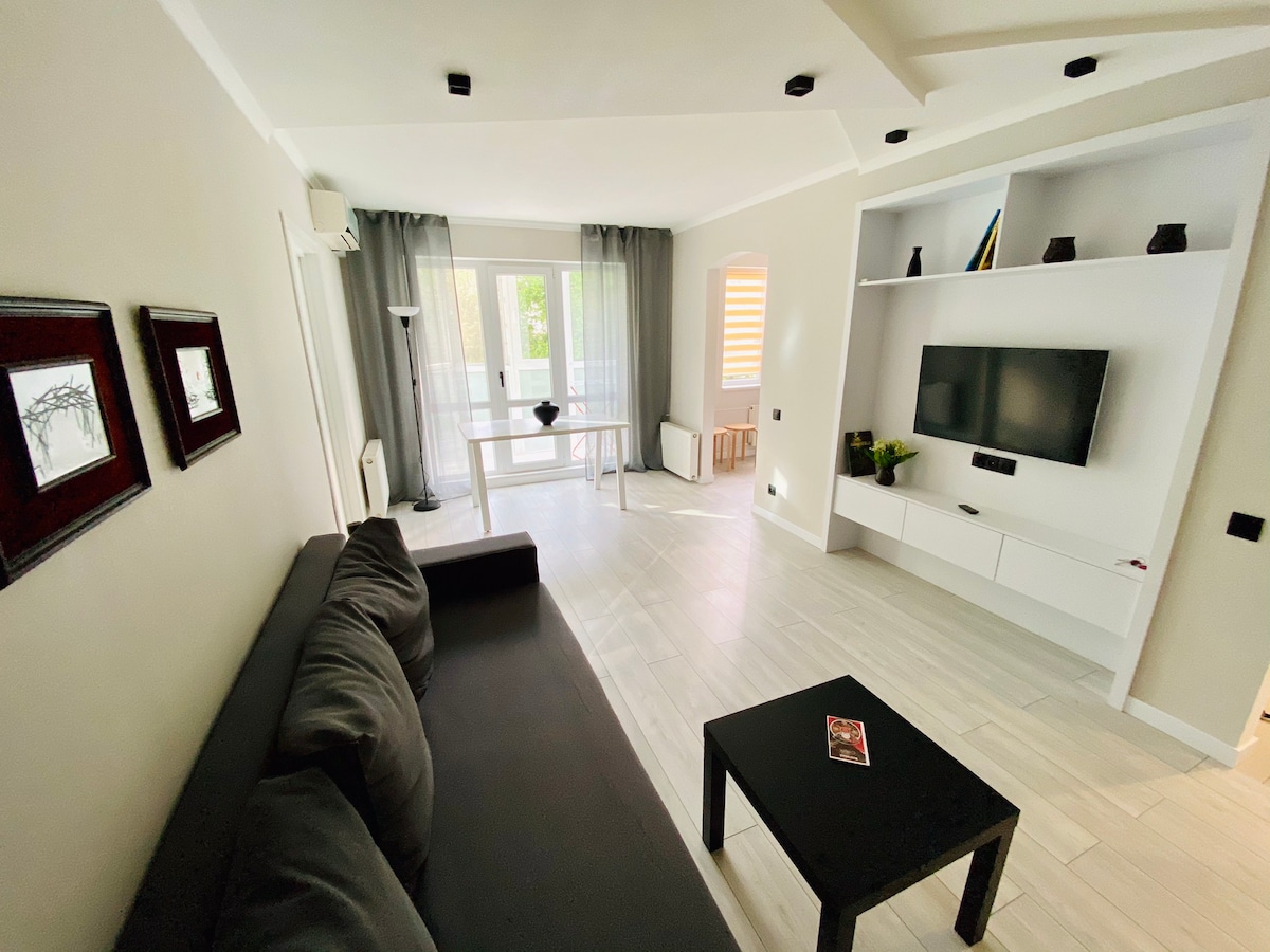 Well maintained and fully furnished 2-room apartment in the quiet center of Kiev within walking distance to the historical center and architectural monuments. Stylish renovation in a minimalist style. Ideal for couples, business travelers, young families. The apartments are equipped with all the necessary amenities. The apartment has a spacious kitchen-studio with a dishwasher, stove, oven, fridge, dishes and everything you need for a quiet, comfortable stay.