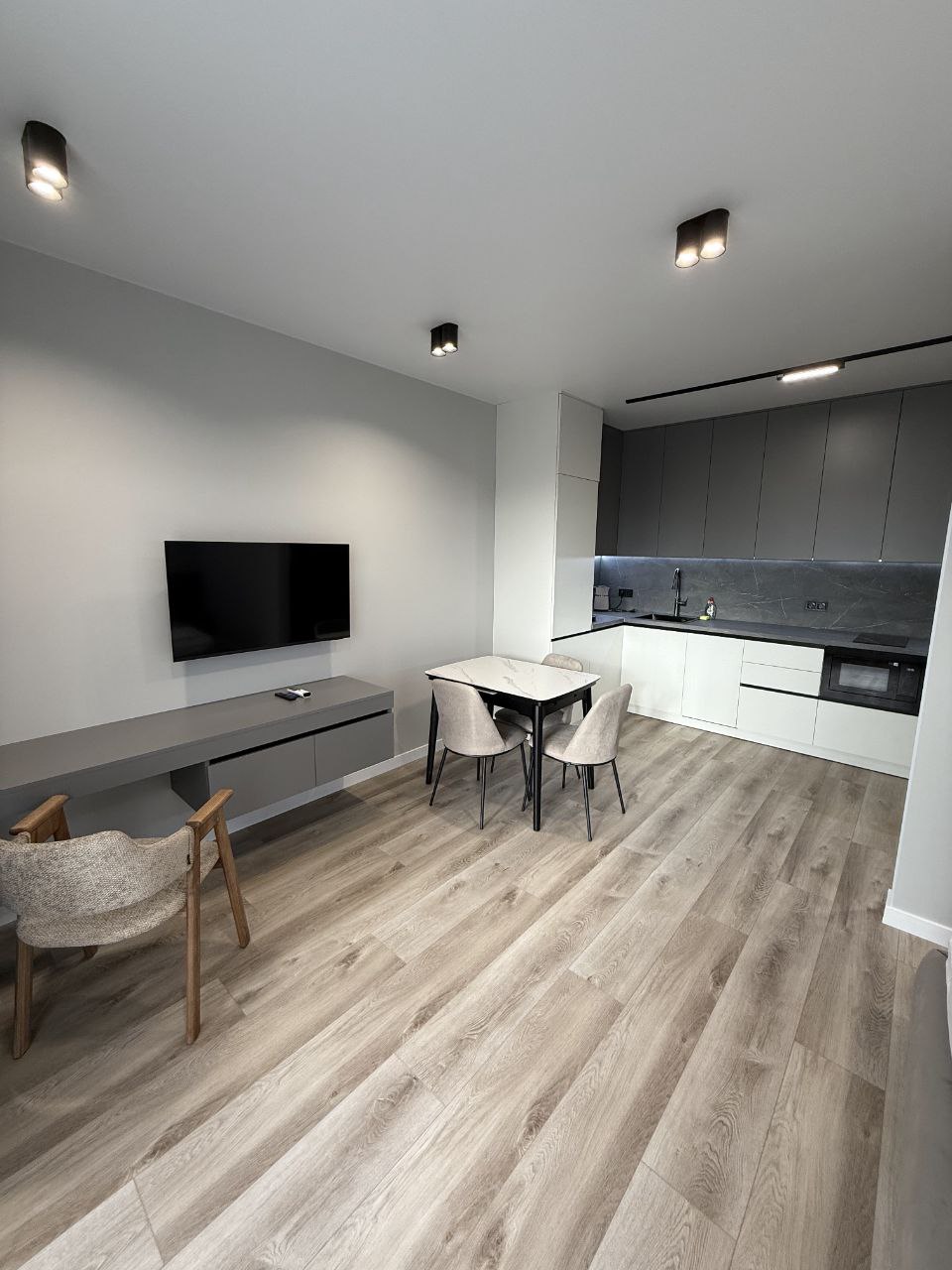 Затишні апартаменти в закритому елітному житловому комплексі. Індивідуальне дизайнерське проектування з використанням екологічних будівельних матеріалів створює атмосферу затишку та комфорту. Апартаменти обладнані сучасною побутовою технікою: прально-сушильною машиною, посудомийкою, духовими шафами, індукційною плитою, кавомашиною. На кухні встановлено очищувач води з потрійною фільтрацією. Апартаменти розташовані на першому поверсі.