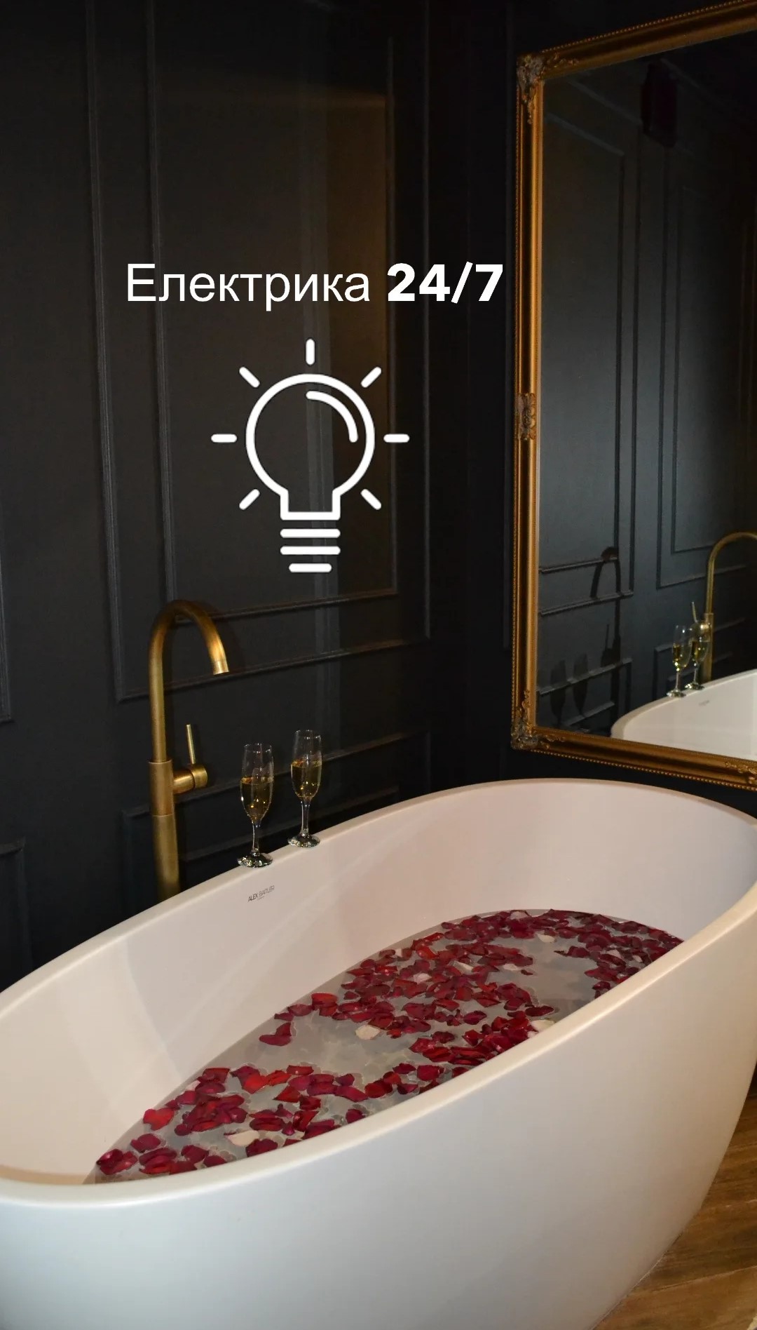 Романтична окремостояча ванна в спальні дозволить Вашому відпочинку в наших апартаментах набути незабутніх спогадів. Стильний інтер'єр з усім необхідним приладдям для проживання дозволить гостям сповна насолоджуватися перебуванням в серці старого міста. Електрику не вимикають