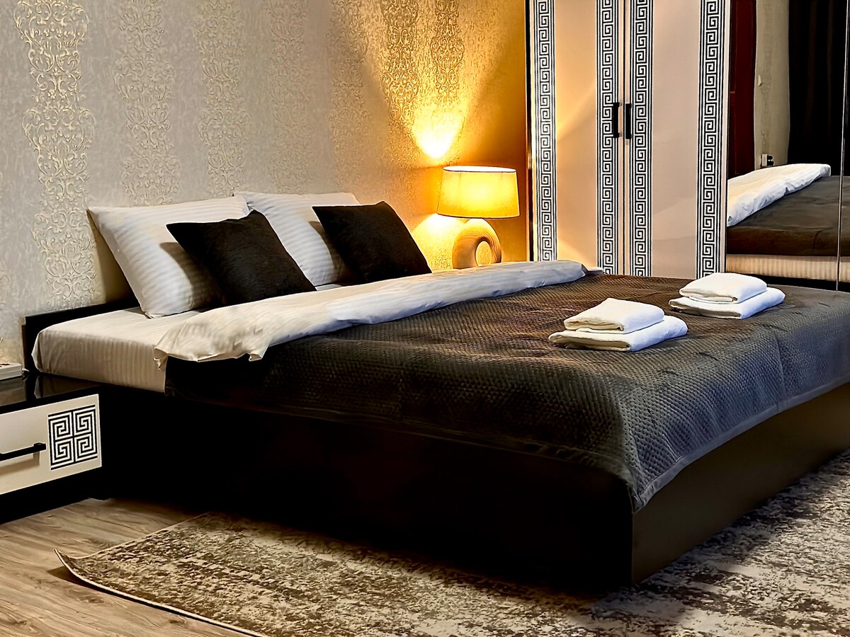 Насолоджуйтесь стильним відпочинком у центрі Чернівців. Стильні апартаменти у самому серці міста! Апартаменти знаходяться в центрі, всього за кілька хвилин пішки від головних визначних пам'яток, магазинів і ресторанів. Відмінна транспортна доступність: поруч зупинки громадського транспорту. Свіжий, сучасний ремонт стильний дизайн. Використано якісні матеріали, що створює затишну атмосферу. Не проґавте можливість жити в стильних апартаментах у центрі міста!