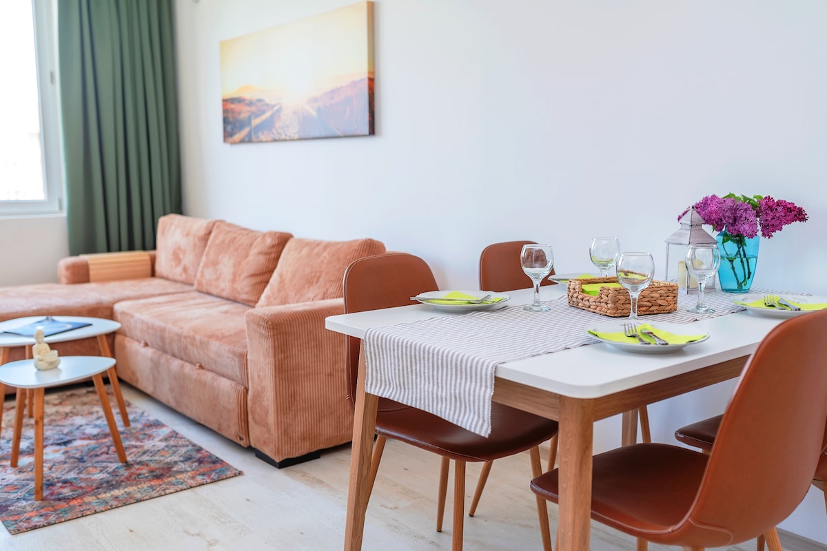 Welcome to our Burgas retreat – not your typical Airbnb, it's our second home too! Chill just 3 min from the beach, stroll the sea garden, or hit the city in 20. Free underground parking, local-art 6m map to guide you. Mornings are coffee and sea views from the balcony. Feel the cozy elegance of Flora Panorama. This is more than a stay, it's a memory-making escape. Family fun or solo chill, book now and dive into our seaside home.