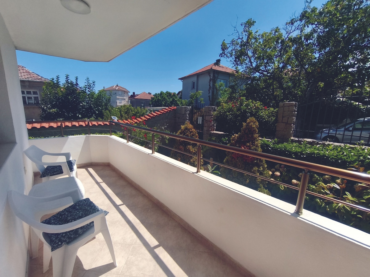 We offer you a 1-bedroom apartment with an incredible sea view located in a quiet residential area just 5 minutes walking distance from Sozopol's old town and the beaches. The apartment is fully equipped with air-conditioning, kitchen with a fridge and cooker, a double sofa bed, kid's crib, balcony, garden with BBQ area, cable TV, free Wi-Fi. The nearest airport is Burgas International Airport, 40 km from the residence. Transport from the airport can be organised.