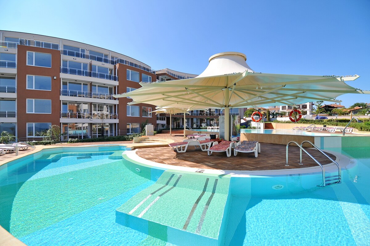 Dear guests, We offer you a stay at our cozy, comfortable and fully equipped, one bedroom apartment at the "Sunny Island" complex in Chernomorets by Sozopol. Everything for some quality time with your family or friends is provided - relax on the balcony or at the swimming pool, take a short walk to the romantic beach just 200 m away, play with the kids at some of the playgrounds around, visit Chernomorets, Sozopol, Burgas... There are so many options for your pleasant stay!