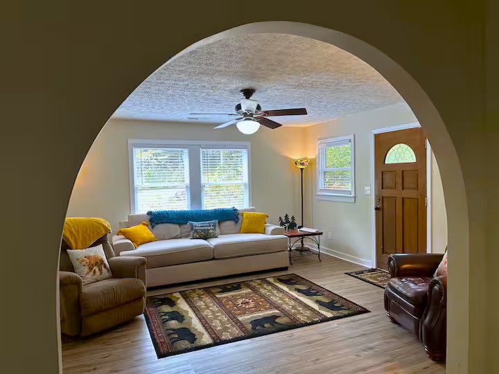 Cozy cottage on Weiss Lake with lake access from April to October (with large dock.) The four seasons porch overlooks the lake during full pool (Mid to Late April- Mid October) and a sun porch overlooks the front garden. There are 3 bedrooms and 2 full baths which sleeps 6 adults comfortably. The home is decorated in a cottage style. Full kitchen and bathrooms stocked with towels. Home has a strict NO SMOKING policy and pets are not allowed without prior approval (fee will apply).