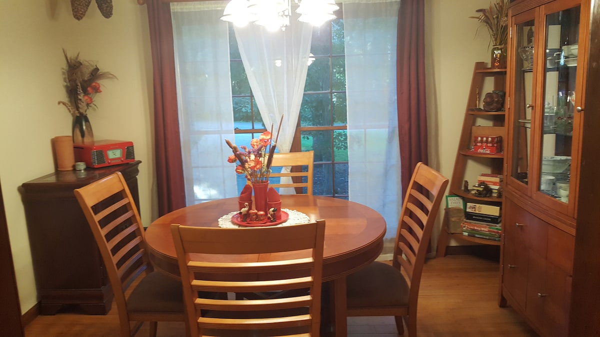 Come stay with us in our special family home. The entire upstairs is dedicated to guests only. You'll find a welcome basket of snacks, fresh filtered well water, and much more. There are places to walk/run right out our front door. Wildlife all around. We are 1/2 distance between Canton and Cartersville off I75. 20 Min to Lake Pointe, 20 min to Reinhardt College, 15 min to Tellus Science Museum and just north of Lake Altoona. We do allow pets.