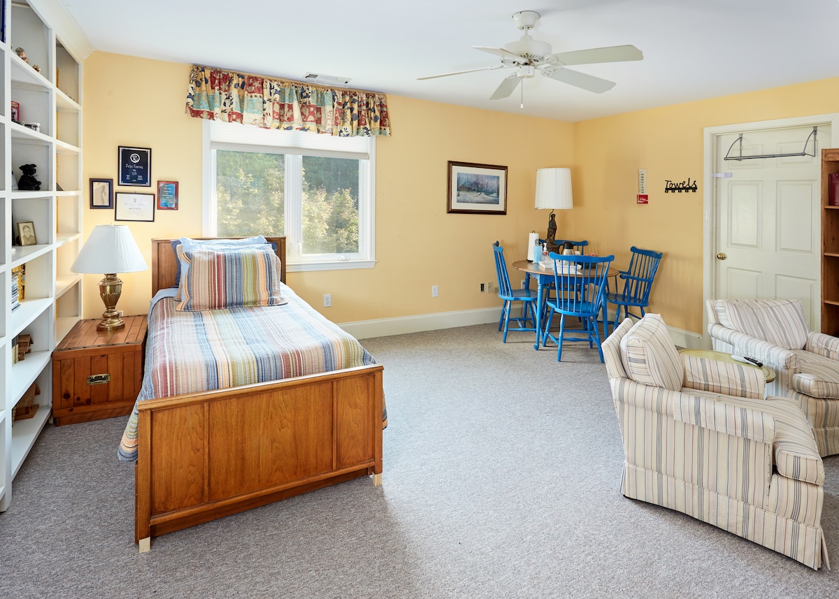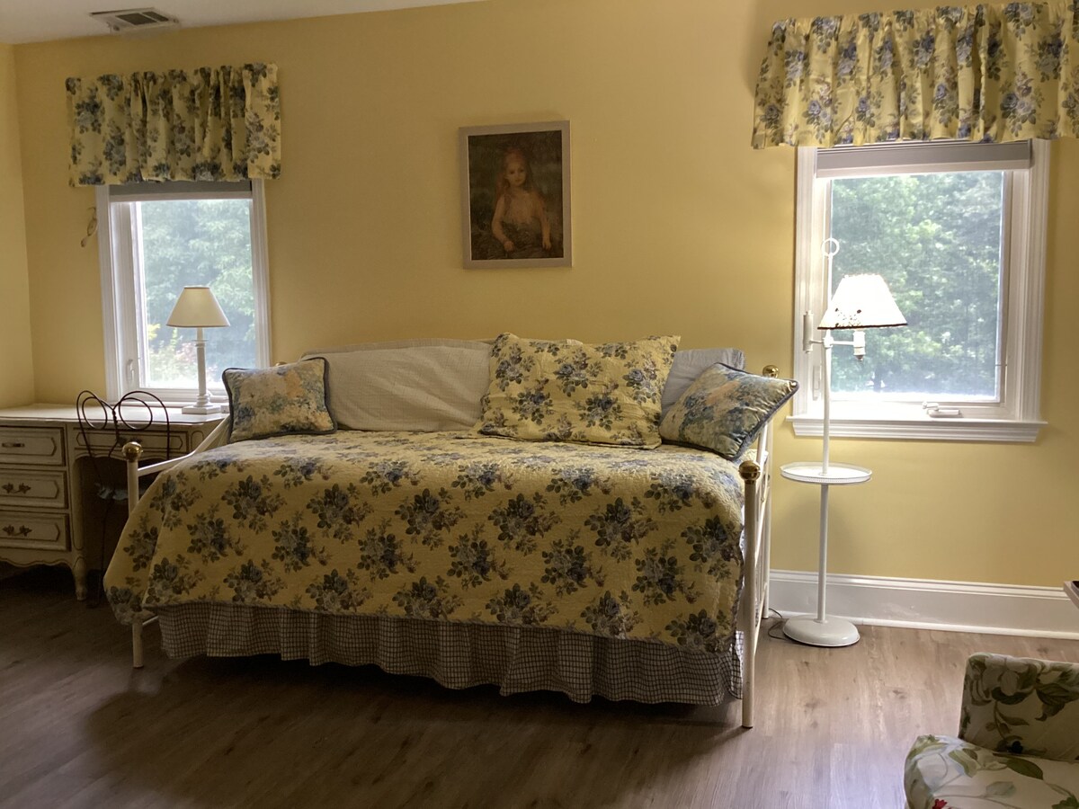 Super Quiet Room. Updated Summer of 2024. The beds are a daybed with super comfy pillow top mattress on top and a pull out bed with memory foam mattress on the bottom. The other bed is a twin XL Electric. There is also a full size twin cot You have your own private vanity & sink in suite. Roku TV with YouTube TV. Small Fridge with storage shelves. The closet is large if you need to store lots of items. You may share a tub/shower/toliet between your room and the “Masi Mara Room”.