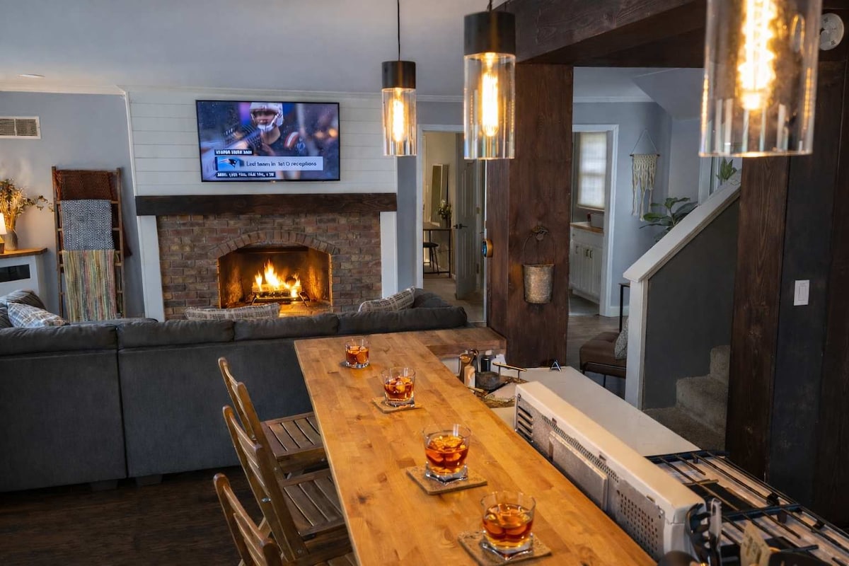 Minutes from downtown Woodstock, our 3 bedroom, 2 bath cottage has been totally updated so everything is new. Our open floor plan has a full kitchen, hi speed internet, convenient keyless entry, smart thermostat, laundry room and charming private patio area, makes for the perfect getaway. We also have a family game room with a foosball table, electronic soft tip dart board and its own 70” Ultra Hi Definition TV with 100+ channels. There is also a desk and office chair. Fully fenced back yard.