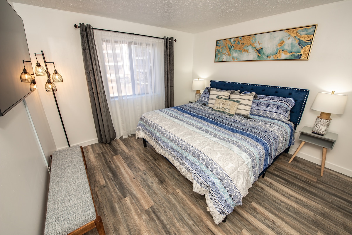 从这间时尚公寓步行即可抵达主街和Frog Level。
