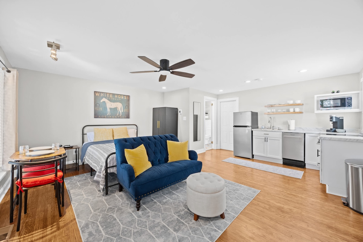 Awesome Sweet Spot of a Louisville Location! This PRIVATE APT. with SELF CHECK IN + FREE PARKING is in a beautiful, safe neighborhood in the historic Highlands. Quick 2-min walk to magnificent Cherokee Park OR charming Bardstown Road - a multitude of eclectic galleries, bars, restaurants & shops to explore! Conveniently (5-10 min) located to Churchill Downs, Downtown Louisville, Louisville Seminary, NuLu, UofL, Bellarmine, Fair & Expo Center, Yum Center, Waterfront & the Airport⚜️