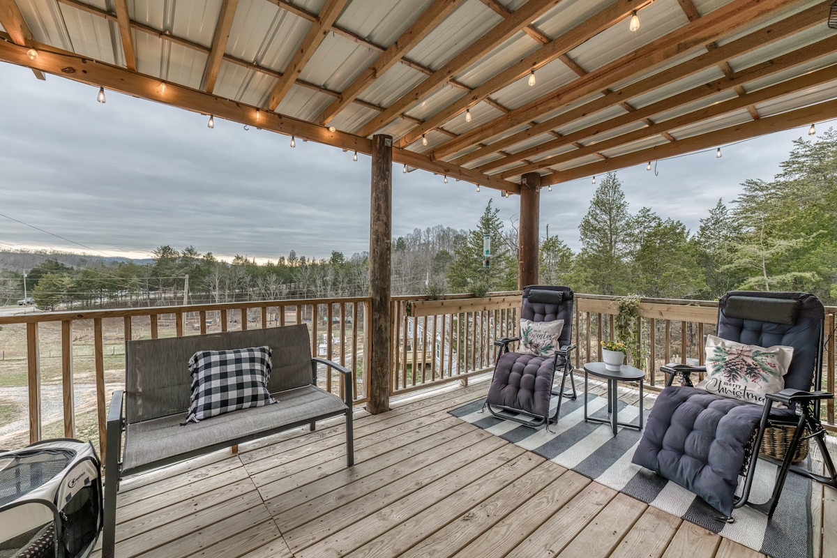 Our beautiful 3br home is located on Cherokee Lake in the foothills of the Great Smoky Mountains. Sleeps 10-12 comfortably. This unit is the main house of three different cabins that sit together on a quiet 1-acre lot with boat dock shared by all three homes (all are Airbnb rentals). The house features a gourmet kitchen, massive deck, sun porch, and dock.
