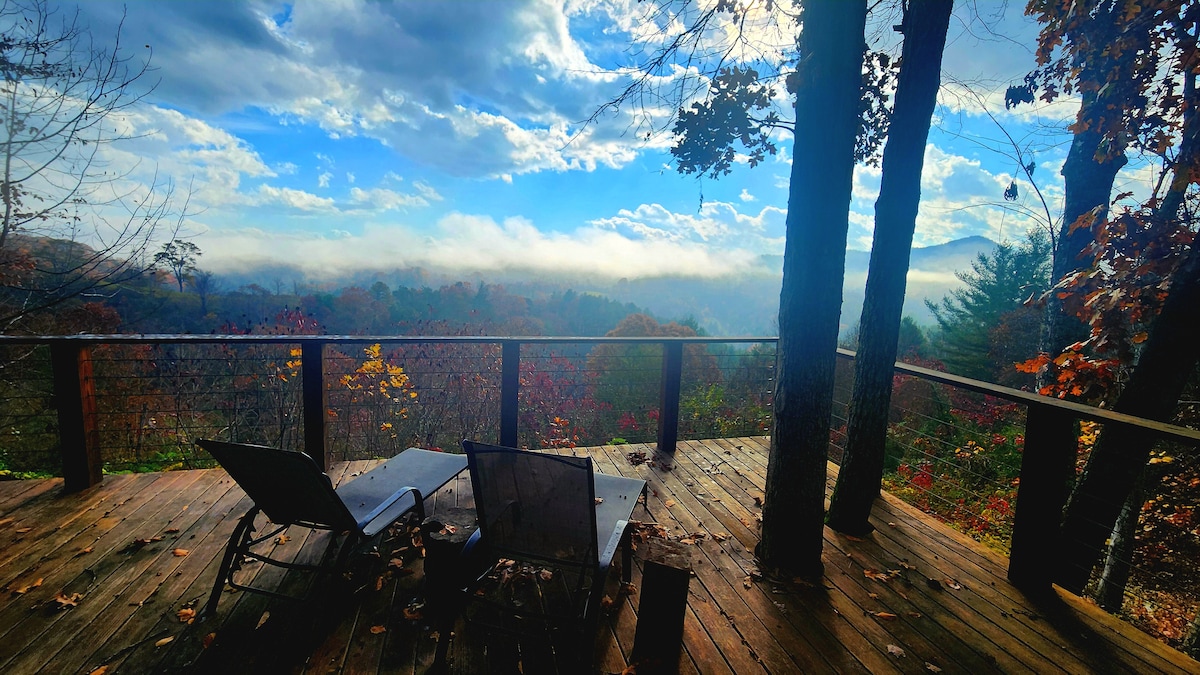 This memorable place is anything but ordinary. This repurposed Silo is located on a working farm. Featuring stunning craftsmanship and lots of relaxing amenities for up to two guest. The property includes stunning mountain views, hiking trails, a small creek for fishing, a hot tub, fire pit, and patio. AND, if you love the fall, the leaves can be spectacular here! The best is you do not have to fight the crowds in Smoky Mountain tourist traps!