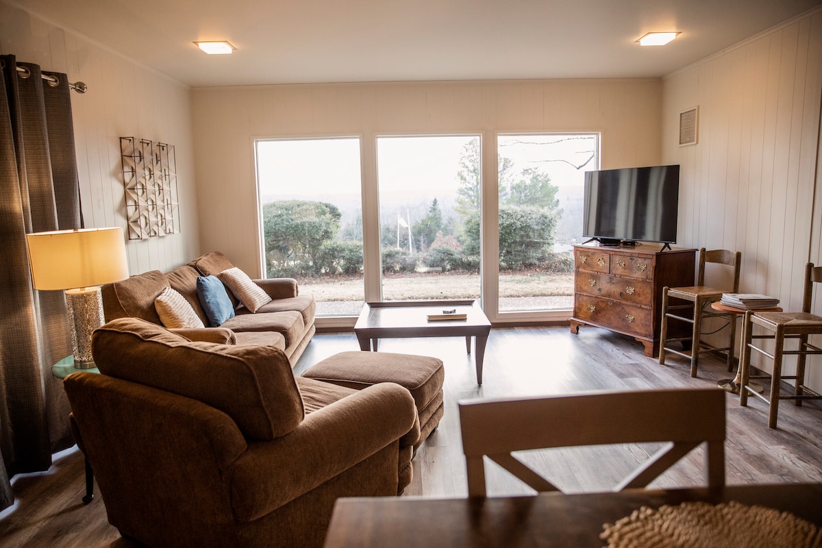 Enjoy river views as well as a view of the North Golf Course in Cherokee Village, AR nestled in the Ozark Mountains. We are .4 miles from the North Golf Course and even closer to a starting point for kayaking. The South Golf Course is only a few miles away. Both courses have spectacular views of the Ozarks. We have an EV charger station in the garage, golf clubs, fishing poles, and kayak. Lake Thunderbird is the largest of 7 lakes in the village with a marina. Enjoy beautiful sunsets on the deck