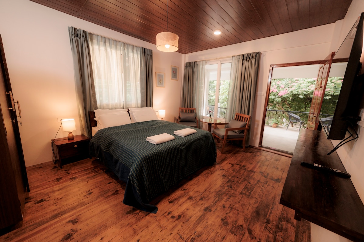 The Garden is a peaceful retreat near Shillong Golf Course, offering a quiet escape in a semi-residential area. Surrounded by pine trees and fresh mountain air, it features a cozy, homely atmosphere with stylish interiors, Ideal for couples, backpackers, business travelers, and families, it has 2 beautiful bedrooms with 2 bathrooms and a spacious living/dining area that opens onto a balcony and access to the terrace.