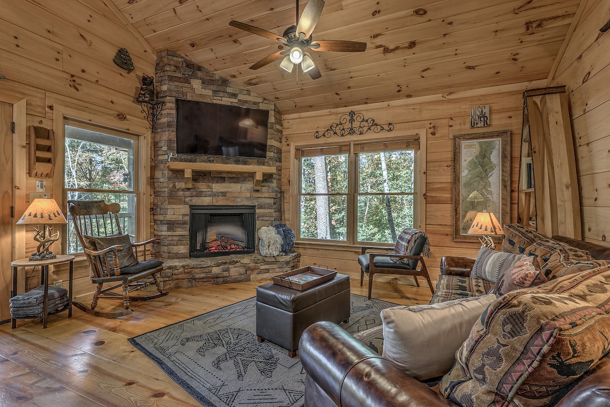 Black Bear Cabin | Cozy Log Cabin Retreat w/ Hot Tub, Fire Pit & Views Escape to Black Bear Cabin – a charming 2-bedroom, 1-bath log cabin tucked away in the peaceful woods of the North Georgia mountains, just a short drive from Ellijay and Blue Ridge. This cozy hideaway offers the perfect mix of rustic charm and modern comfort, ideal for couples or small families looking to relax, recharge, and reconnect with nature.