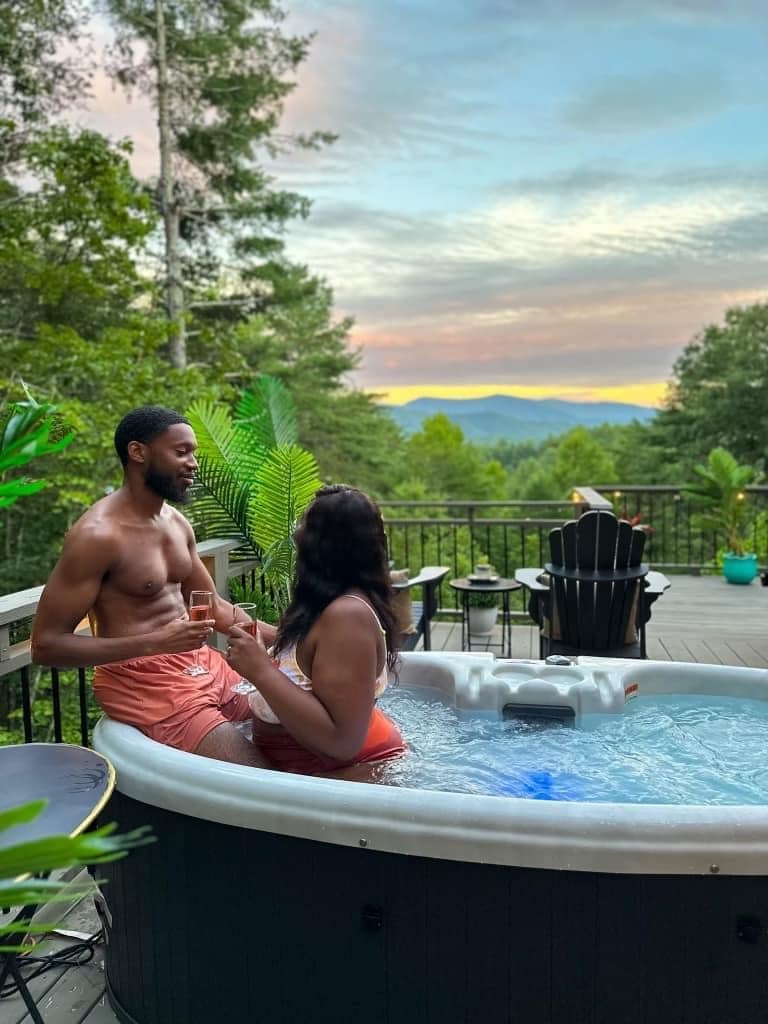 Escape to this charming log cabin with breathtaking mountain views! Perfect for a romantic retreat or a fun getaway, this 2-bedroom, 2-bath cabin features vaulted ceilings, a cozy wood-burning fireplace, and private ensuite bedrooms. Enjoy a hot tub under the stars, a spacious fire pit for s’mores, and a back porch grill for outdoor dining. Ideally located just 15 minutes from downtown Blue Ridge and Ellijay.