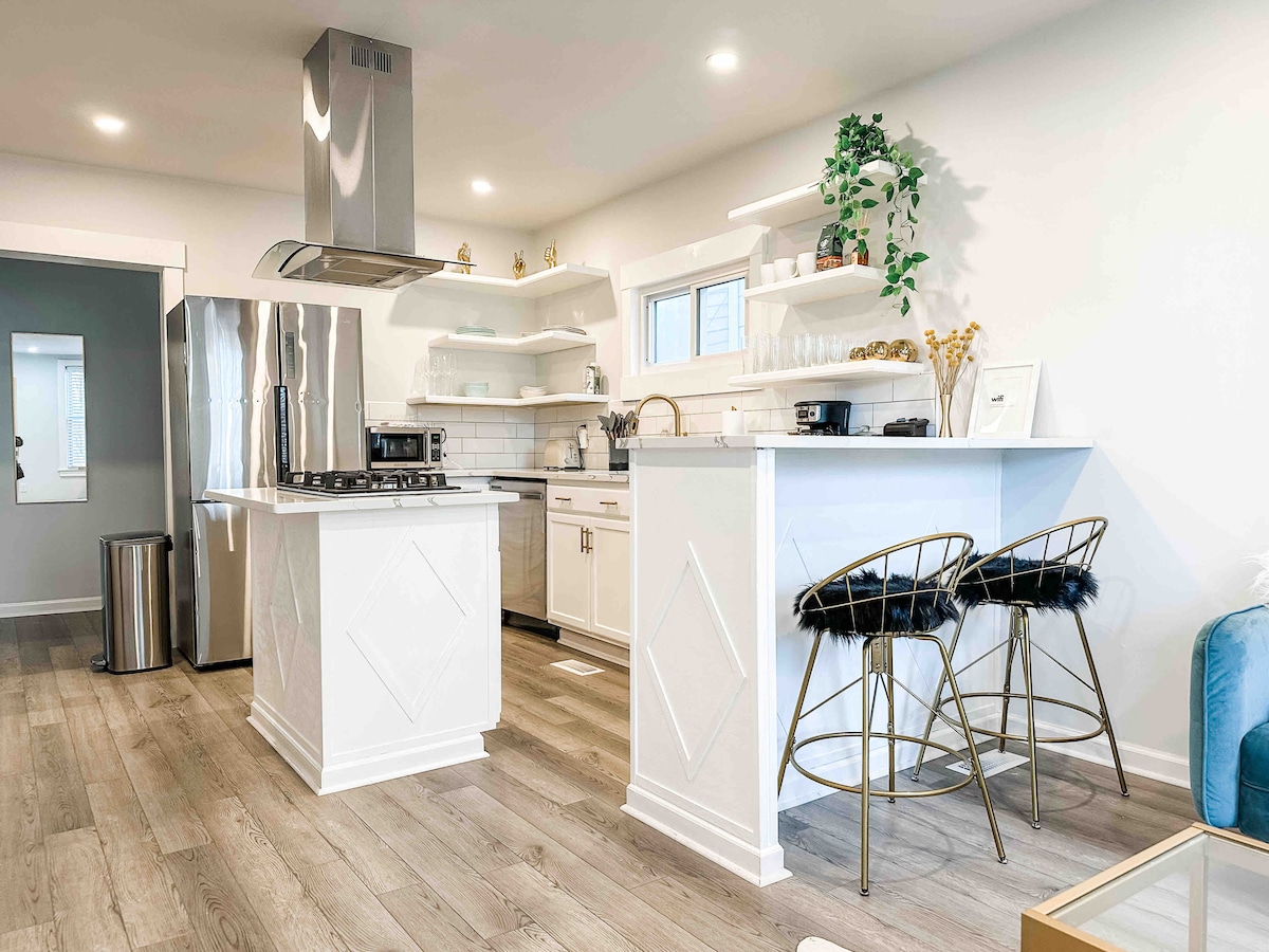 You'll love your stay at this charming and cozy 1 level bungalow!! It offers a brand new high quality renovation convenient to all the Baltimore hot spots. The open layout coupled with stylish finishes and decor will make you feel right at home. It's fully stocked with almost every possible thing you could imagine for your use! Really no need to bring anything but yourself and clothes. The 3 bedrooms with a movable foldaway queen sofabed can sleep 8 comfortably. Plenty of parking available.