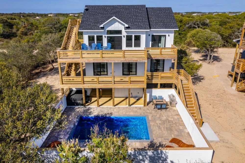 The Shore House is an oceanfront six bedroom home sitting on the pristine beaches of the OB. One of the few houses you can get uninterrupted ocean views from all floors and most of the bedrooms. Bedrooms also all have en-suites. This is an all sand area, you want a 4x4 or a suv/truck with high clearance. SUVs like Acadias or Grand Cherokees, will get stuck. Five of 6 bedrooms, on 3 different levels of the house have ocean views. 4 king bedrooms have ensuites 100 feet to the beach.