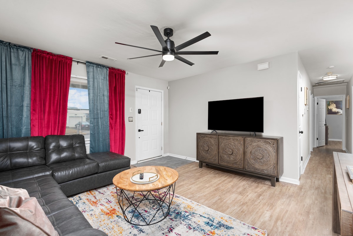 This is a charming and cozy Cape Cod style house. It’s decorations are eclectic and comfortable. There is a king size bed in the master bedroom and a queen size bed in the second bedroom. There are smart TV’s in each bedroom and the living room. This home has brand new central heat and air conditioning, new stainless steel refrigerator and smooth top stove, microwave, and new carpeting. It’s centrally located and there is plenty of space for parking. This is truly a home away from home.