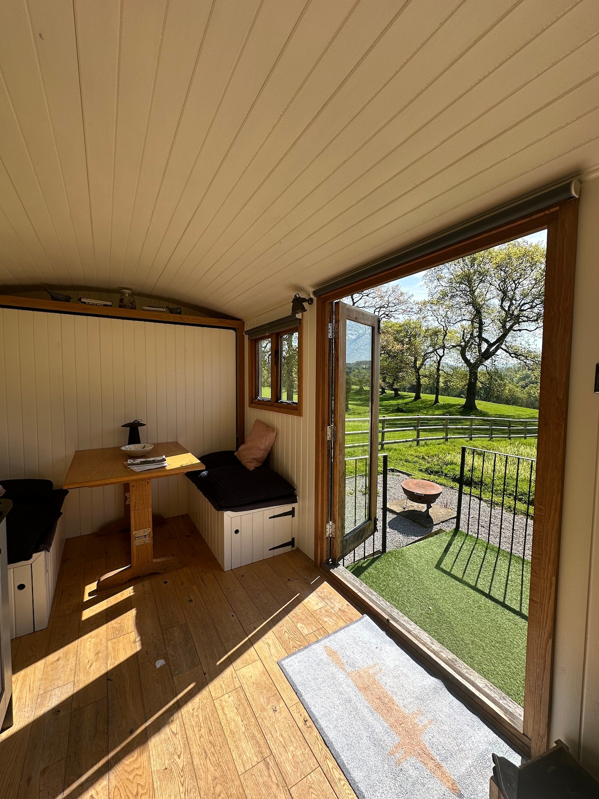 A unique, hand built shepherd’s hut, surrounded by Shropshire countryside, with stunning views out to the sunset in the evening Unplug, unwind and immerse yourself in nature, find inspiration & deep connection and enjoy starry nights with the soothing sound of the Tawny owls calling... Spend your days taking walks from the doorstep down country lanes, and enjoy your evenings cooking in the outdoor kitchen and relaxing by the fire pit...or snuggle up inside with a good book by the wood burner
