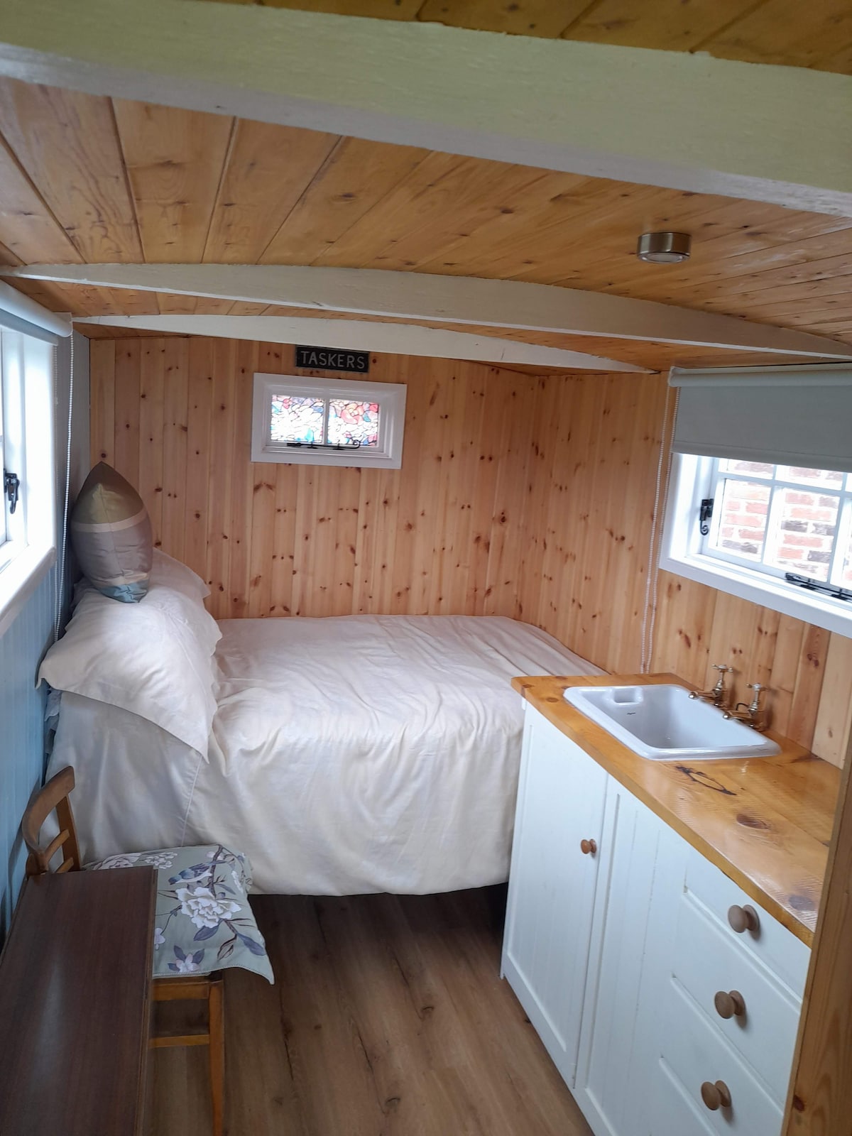 Our new and delightful shepherds hut is set within the grounds of our Cheshire farmhouse and enjoys privacy within a picturesque rural setting. It has a king size bed, a well equipped kitchenette, underfloor heating and black out roman blinds. There is an ensuite bathroom with WC, basin and shower. Outside there is a private seating area with a fire pit. It's the perfect space for couples who want to relax or for those looking to be more active and explore. On site parking and WiFi.