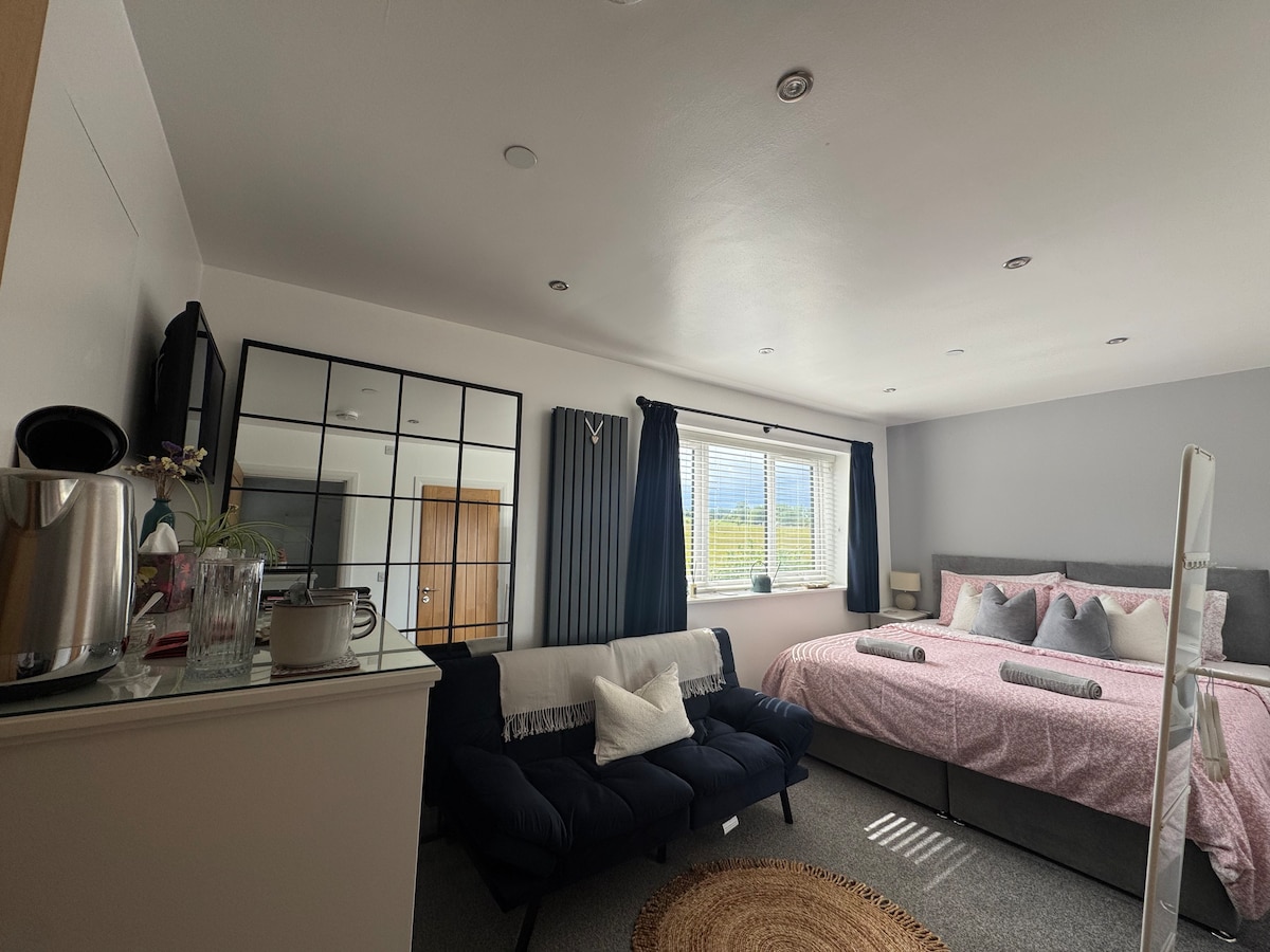 Quaint stone studio Countryside Cottage Lounge area: Seating area, small sofa, log burner stove, TV , Victorian bed with Hypnos mattress, Luxury bedding, & towels provided for the cottage. Blackout blind and heavy curtains for peaceful sleep. Kitchen area: All utensils provided for your stay. Shower room: Underfloor heating, large heated towel rail, towels & consumables provided including toilet paper, body wash hotel soap & body cream.