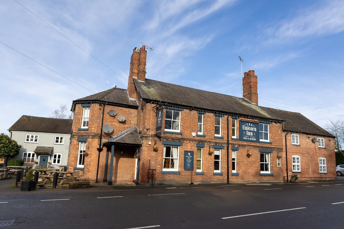 The Red Rum Room (sleeps one) at TheThree Horseshoes. Stylish boutique accommodation in the charming village of Barton-under-Needwood, attached to the welcoming Three Horseshoes country pub. A stunning single room with a private bathroom (two other double rooms subject to availability). Moments from Barton Marina with lakeside dining, shops & scenic walks. Historic Lichfield is a short drive away. Perfect for relaxing countryside stays, business trips, or exploring the heart of Staffordshire.
