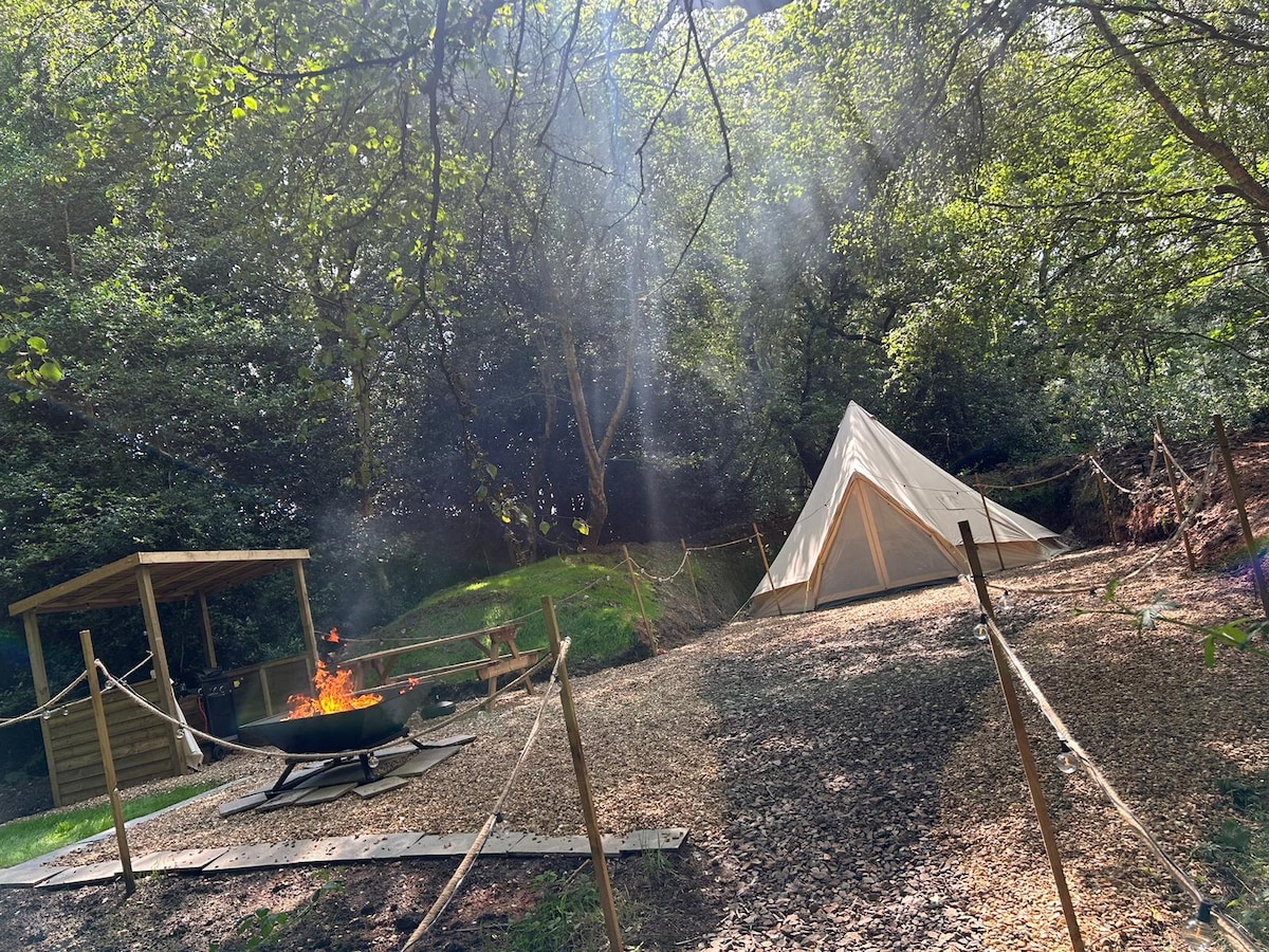 Spacious 7.5m bell tent in secluded woodland