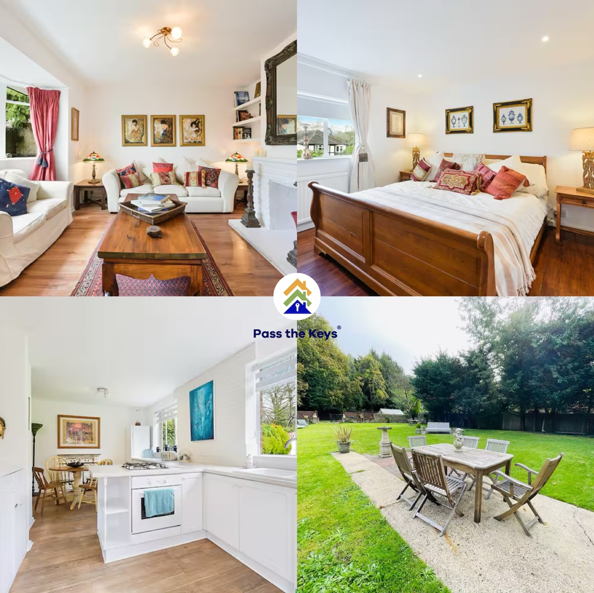 A self-contained cottage situated in a quiet position surrounded by woodland within 4 miles of Guildford town centre and refurbished to a high standard with fully equipped kitchen and a utility room with washing machine, tumble drier and downstairs toilet. There are four bedrooms , one ensuite and family bathroom. Parking for 3 cars. Large garden with patio and seating and large netted trampoline for use at your own risk. People from all backgrounds are welcome in our home.