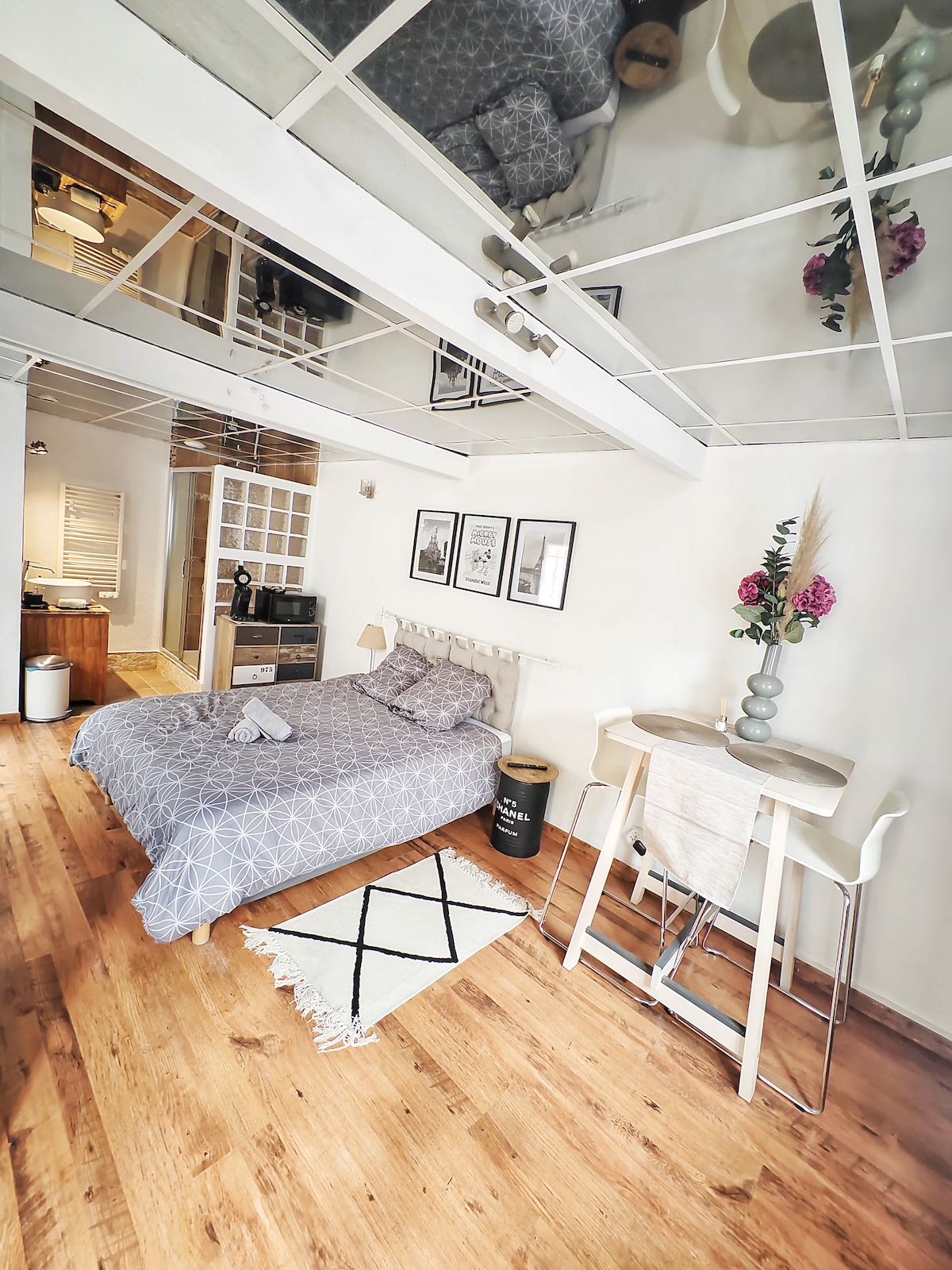 Cet appartement, entièrement refait à neuf se trouve au cœur de Chessy, plusieurs restaurants, une supérette et une boulangerie se situent au bout de la rue. Situé à 5 minutes de l’entrée de Disneyland Paris en voiture et à moins de 20 minutes à pieds. Il est également à 6 minutes de marche du centre commercial : Val d’Europe. La décoration évoque l’univers Disney, avec sa chambre à thème Peter Pan et une La belle et la bête, quelques touches disney sont présentes dans les autres pièces.