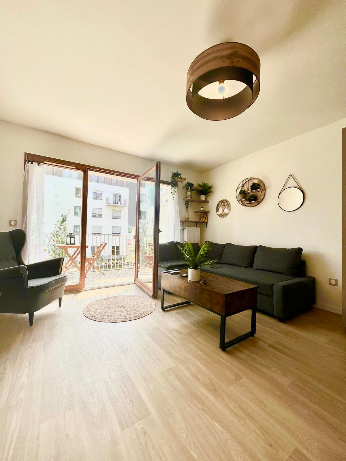 Bienvenue au Chic Boisé Disney ! À 10 min de Disneyland Paris A 10 min de village nature À 30 min de Paris Appartement Lumineux et moderne avec décoration boisée Cuisine high-tech et entièrement équipée Salon : Spacieux avec canapé-lit Smart TV table à manger Chambre : Grand lit double lit bébé inclus Dressing Salle de bain : Moderne avec douche italienne Machine à laver & miroir lumineux Proximité : Val d'Europe & Vallée Village (5 min) pour courses /shopping Parking privé et gratuit