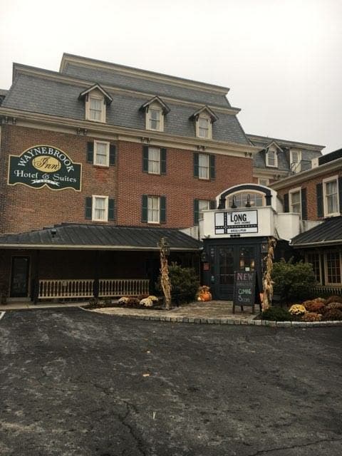 The Waynebrook Inn offers three rooms with double queen beds. Each of these rooms also includes a table & chairs. The Long Way Home Grill & Pub is located inside of the inn. The pub is in the basement & has 14 flat screen tvs. The restaurant has a full bar where you can sit & watch fire baked pizzas be made! There are a few options available to host parties if you'd like. Those include, the club room, garden room & courtyard for outdoor events. Call for more info.
