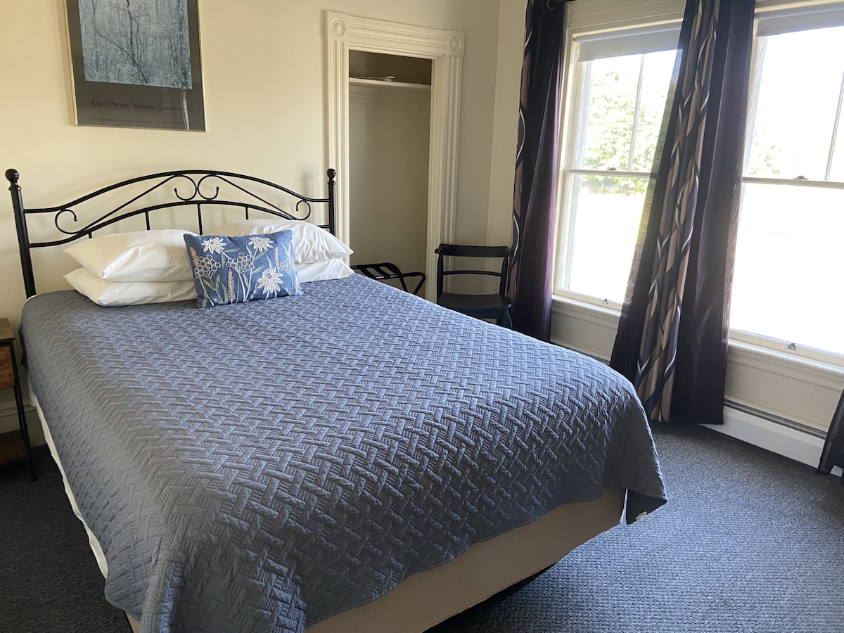 Unit 8 is on the second floor in the main house with a queen size bed, microwave, refrigerator and flat-screen TV. This room can be rented alone or as part of a suite with rooms 7 and 9. The three rooms share a full size bathroom with tiled bathtub. This is an economical choice at $89 per night for an individual room. -Rates may vary depending on Availability/Occupancy-