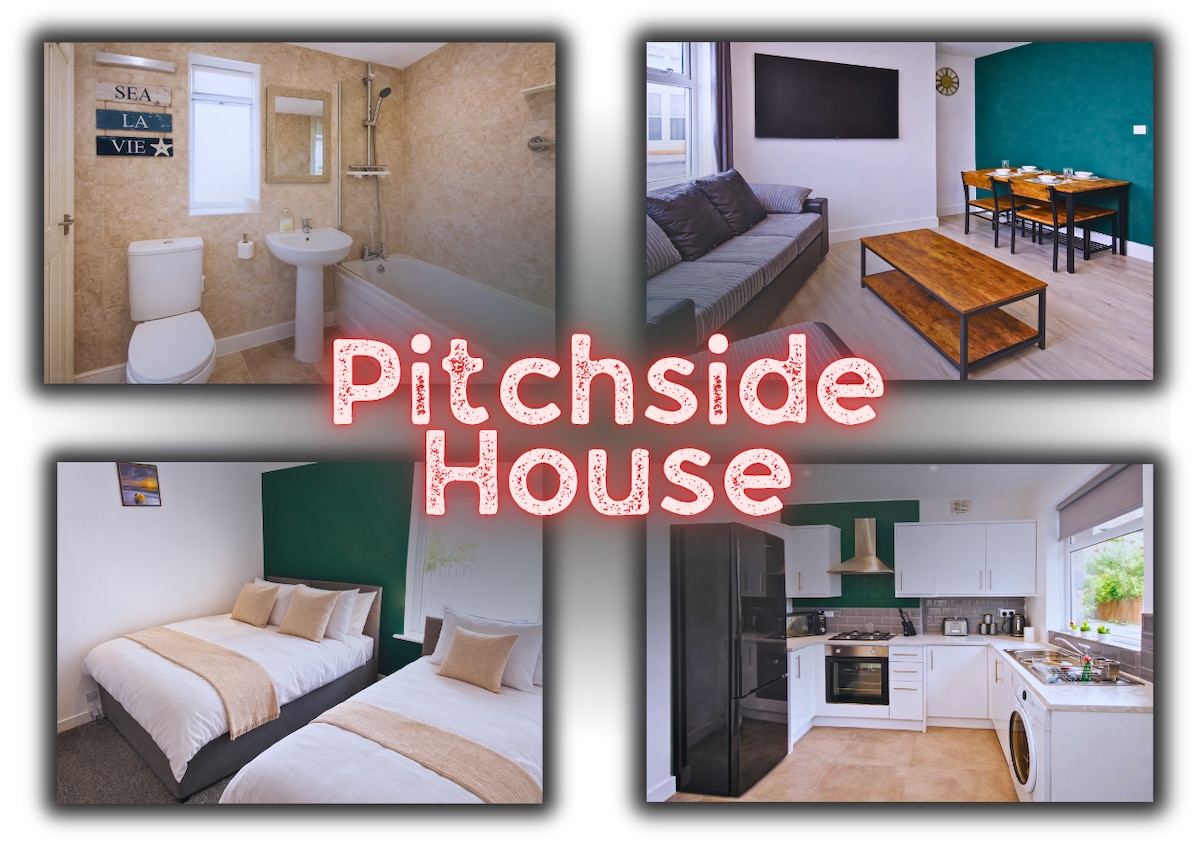 Enjoy a stylish experience at this centrally-located place. Location: This house is situated within a 2 minute walk to Newcastle-under-Lyme Town Centre. -Your own en-suite R6 - A fully equipped, trendy and big kitchen fitted with two ovens, two sinks, integrated microwaves and three fridge-freezers. - A custom-built living & dining area fitted with sofas, as well as a bar and stools situated beneath the wall art. -Private parking included for those of you that prefer to drive