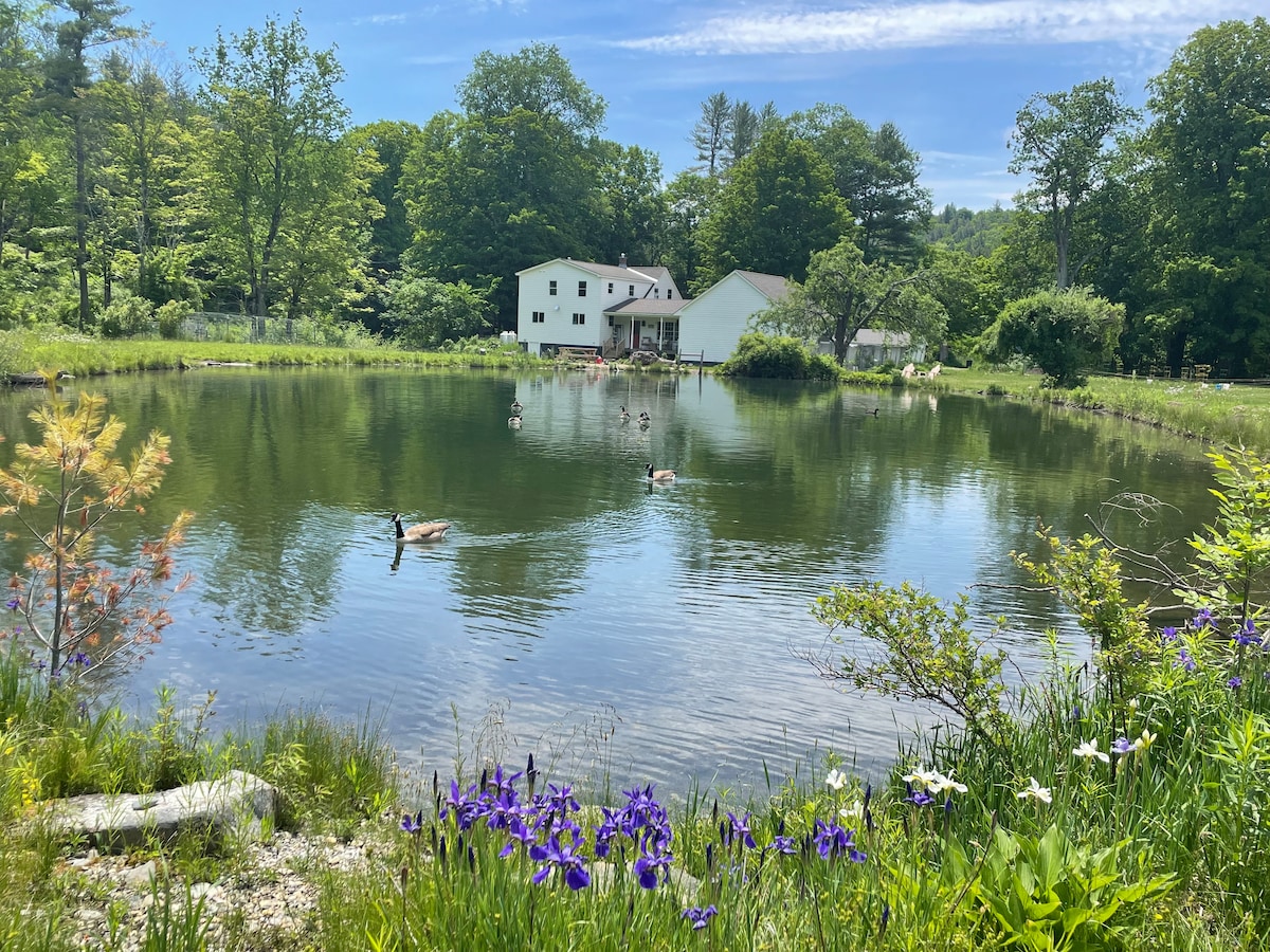 Antique guest cottage on a becountry farm property with acres of fields, ponds, forests and streams, adjoining Quabbin Reservoir domain. Ideal for hikers, bird watchers, and bicyclists, this quiet country retreat offers trails and terrain to explore, only 3 miles away from small historic New England town. Make yourself at home in the comfortably furnished post and beam home with terrace and pond views, adventure in the surroundings, dip in fresh water streams, and relax in the claw foot bathtub