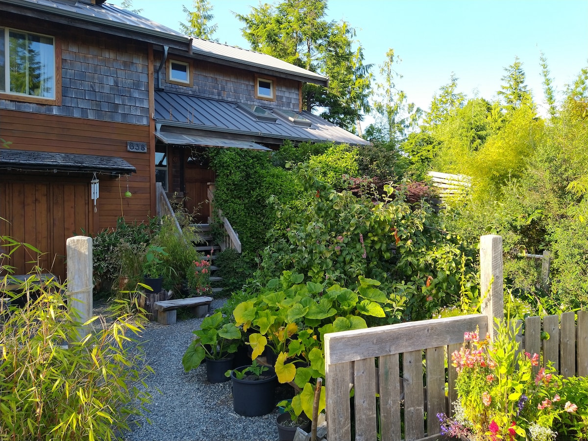 Come enjoy Casita Tofino~7 minutes on foot to two of the best beaches in Tofino. 450 square foot, hand-crafted cabin down a quiet road. Nestled in the rainforest, spacious and bright windows. One bedroom, Queen bed, full bathroom, full kitchen, open-concept living/dining room radiant in-floor heat. Outdoor heated shower Outside seating nook with Adirondack chairs. Private parking. EV 120-volt plug charger. Owners live in a separate house around the bend. Fast Internet. Family Owned.