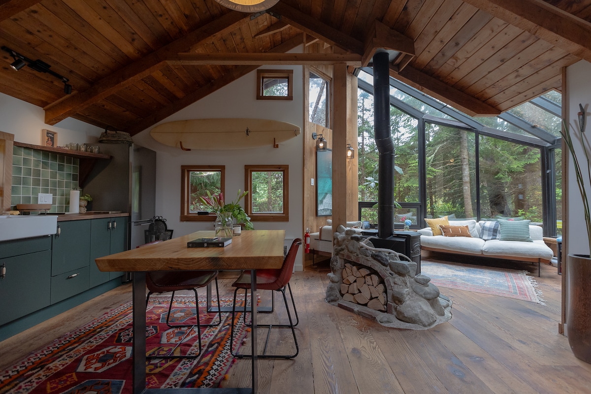 Surfers Guesthouse is located on Jensen's Bay inlet on the eastern coastline of Tofino, steps away from Chesterman Beach & Cox Bay - the best surf beaches Tofino has to offer. This private space is fully equipped for your stay: -private hot tub -private indoor sauna -hot outdoor shower -surfboard & SUP rack -outdoor fire pit -foot & dog wash -EV charger (stage 2)