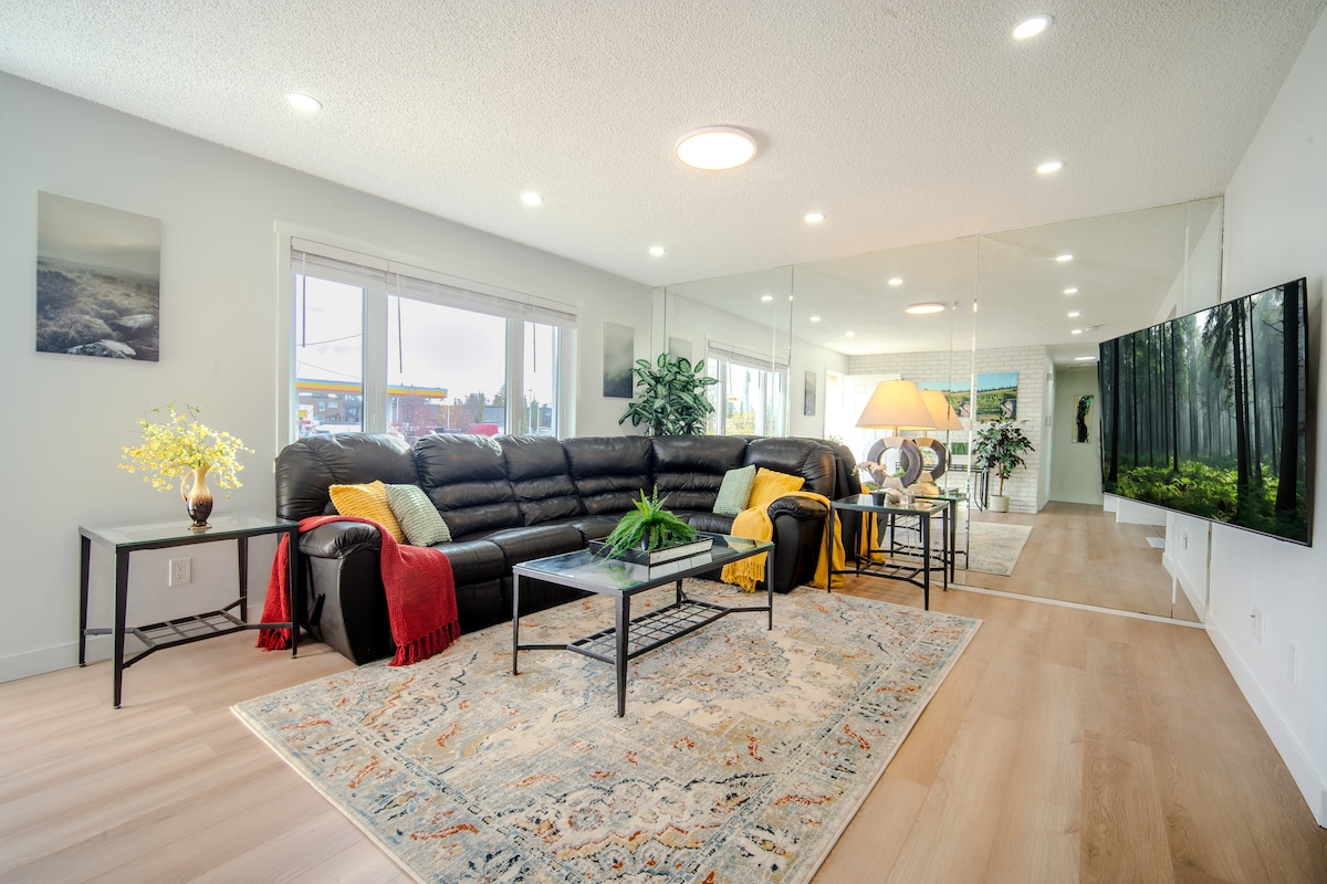 Modern full, bright, high ceiling basement suite. Separate entrance. It features tasteful décor and new appliances. Relax on the spacious sofa in front of the fireplace. Or enjoy the sunshine on the patio with comfortable patio furniture. In the evening enjoy the outdoor gas fireplace or take a dip in the hot tub. When you're ready for bed, an exceptionally comfortable queen bed awaits you. We are located next to the highway, and 5 mins from the airport.