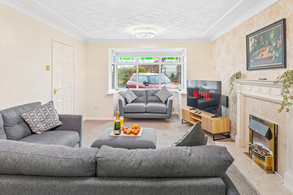Modern 2-bed terrace with cozy bedrooms, open-plan living, fully equipped kitchen, high-speed Wi-Fi, and workspace—perfect for families, business travelers, and tourists. Guests enjoy full access, free parking, and a relaxing garden. Just 8 minutes’ walk to the train station, with easy motorway access, shops, cafes, and restaurants nearby. Flexible check-in/out for an stress-free stay.