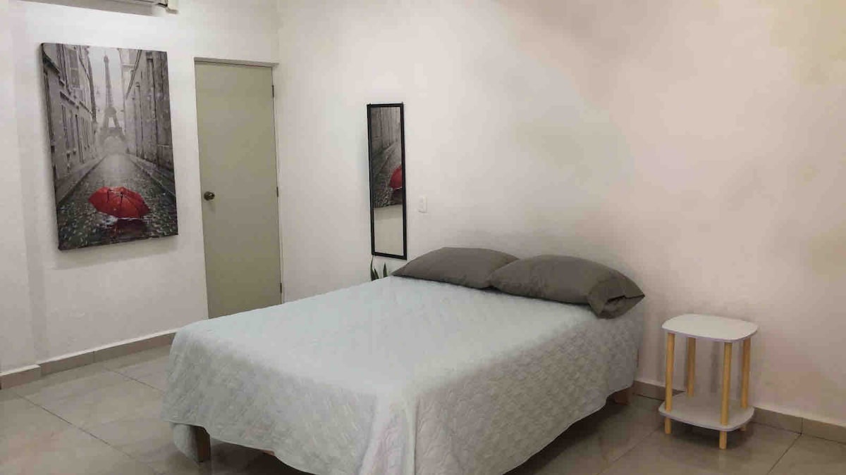 Disfruta de tu estancia, te ofrezco un alojamiento que se destaca por su armonía , limpieza y seguridad . Por encontrarse en una avenida principal podrás tomar un taxi sin dificultad a cualquier hora. Sobre la Avenida prinicpal encontraras : Restaurantes 120m. ;Farmacias y Hospital 170m ; lavandería 100 m, panaderías y fruterías. Tendras: smart T.V , WiFi , A/C, Cama Queen size, estacionamiento. Puedo ir por ti al aeropuerto o Terminal de Autobus ( Previo Acuerdo ).
