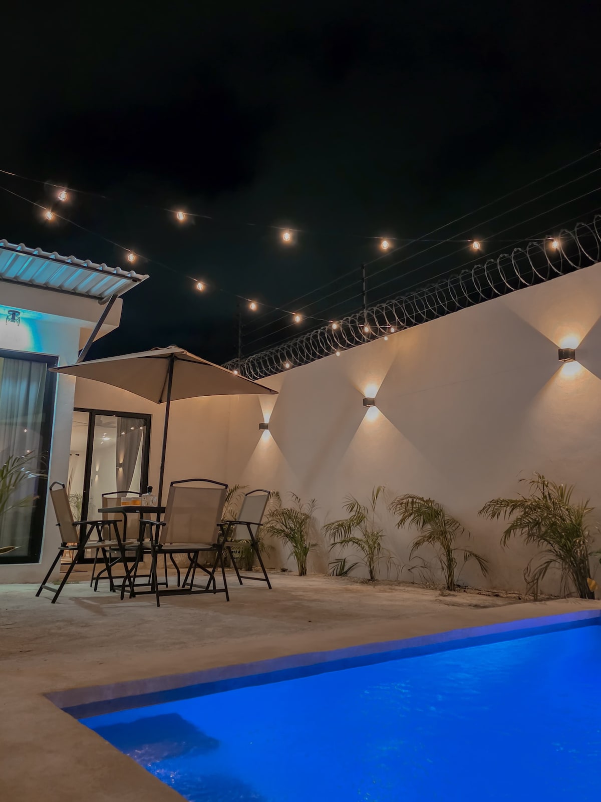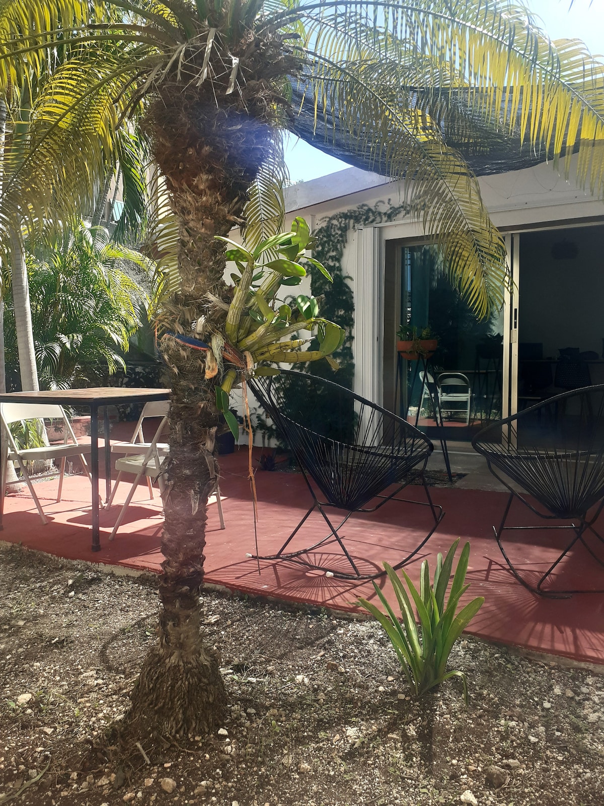 Relajado y rodeado de naturaleza, así es el espacio donde disfrutaras de un patio con palmeras, mientras le pides a Alexa que te ambiente con música de reggae para sentir el caribe mexicano. Además cerca de todo; como la bahía con su explanada a tan solo 5 cuadras, donde podrás disfrutar de las tradicionales marquesitas, o el aeropuerto y próximo Tren Maya a 5 minutos de distancia. Una estancia diseñada para que descanses y vivas una bonita experiencia.