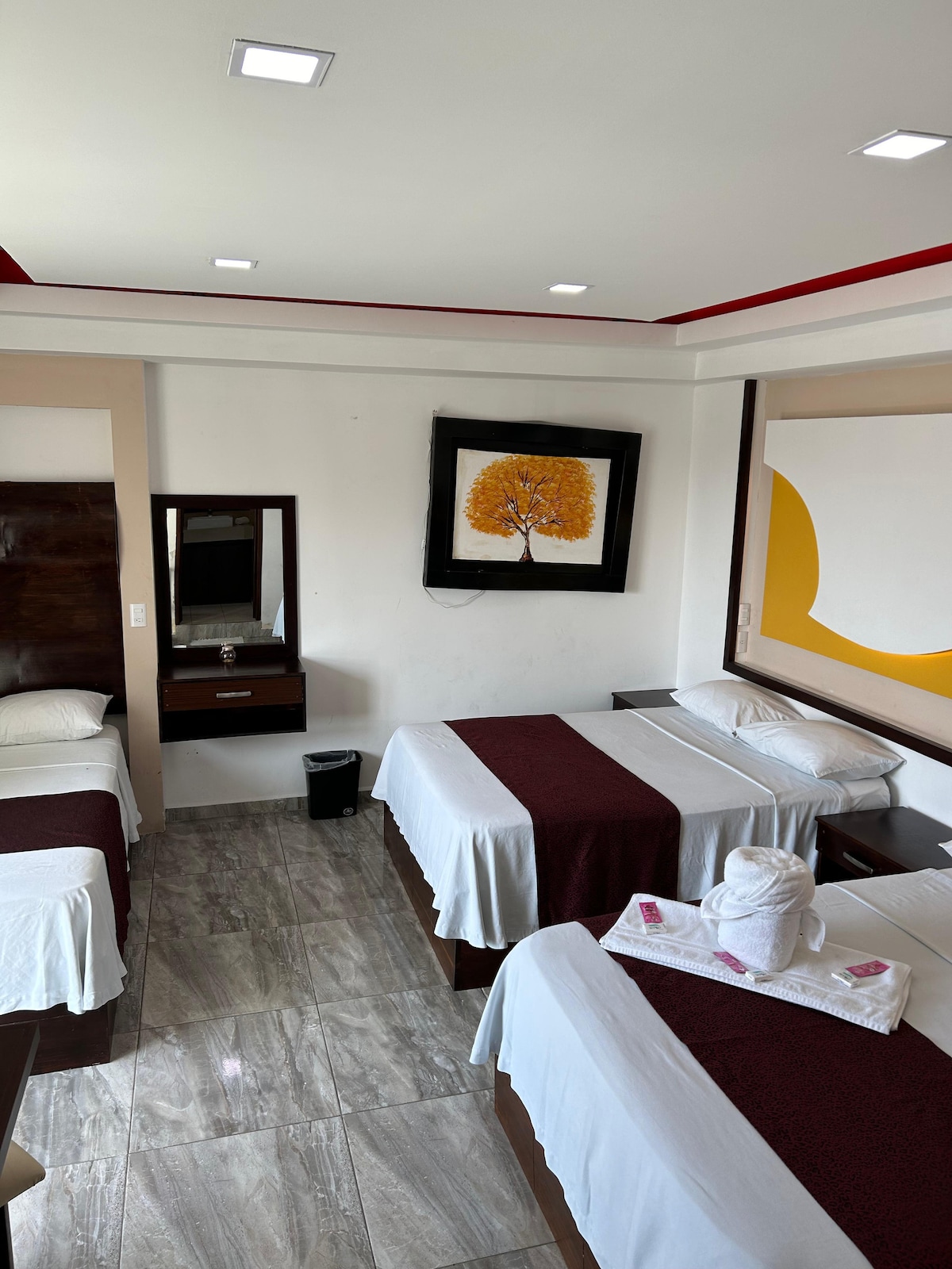 Mini hotel en el centro de Chetumal, recién remodelado, con habitaciones modernas, cómodas y totalmente equipadas: aire acondicionado, TV, baño privado, frigobar, área de trabajo y perchero. Ubicación estratégica para explorar Bacalar (30 min), Mahahual (1h30) y Tulum (2h), además del Boulevard Bahía (10 min) con restaurantes, bares y paseo frente al mar. Ideal para viajeros de placer o negocios que buscan comodidad, buena ubicación y fácil acceso a los principales atractivos.