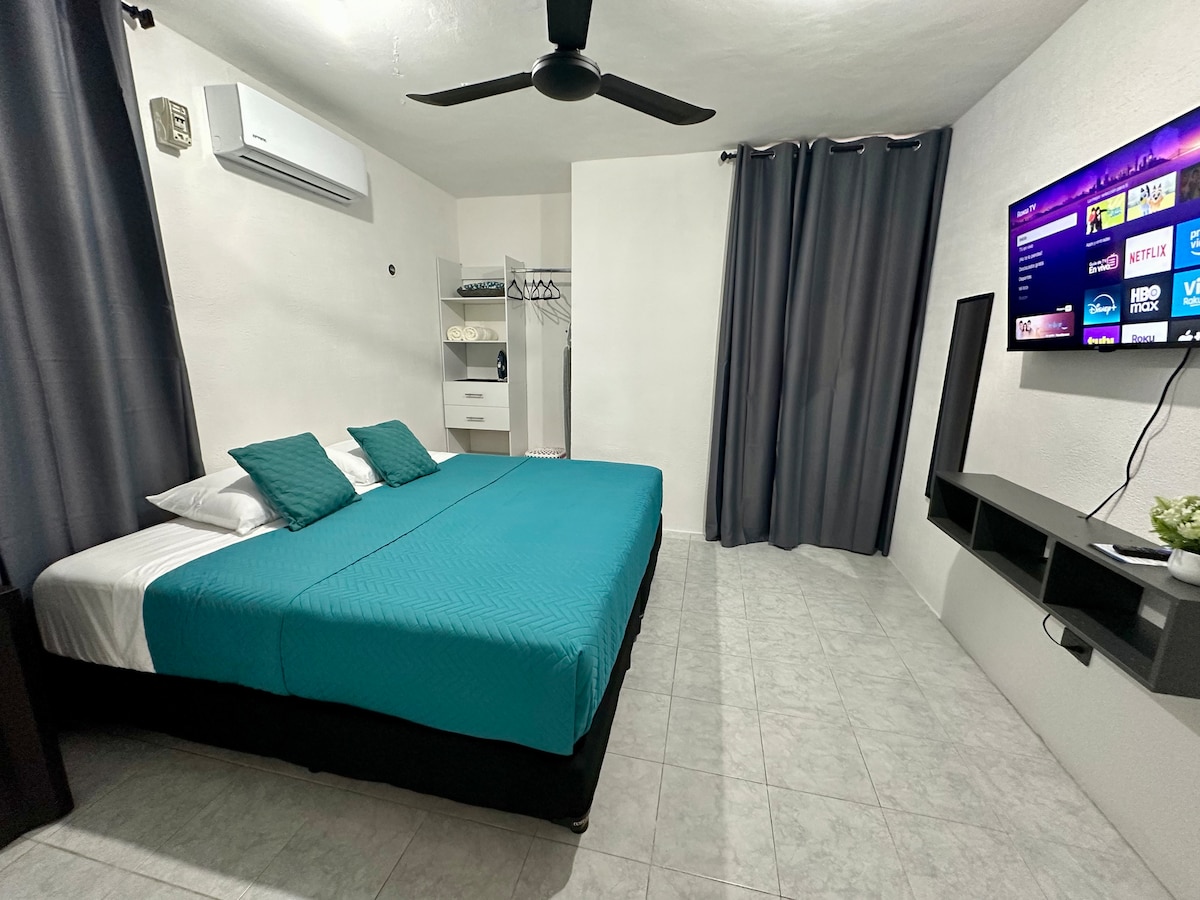 Disfruta de este alojamiento tranquilo y céntrico. A una cuadra del Malecón Boulevard Bahía, en donde es una zona de paseo, de restaurantes, bares, parques y atracciones. A 1 minuto de la Mega Escultura, 4 minutos de la Fuente del Pescador, 5 minutos a la Explanada de la Bandera y muchos sitios más. A 5 Minutos del centro de la ciudad. y 10 min de Central de Autobuses y Aeropuerto. En una zona muy tranquila. A solo 30 minutos manejando de la Laguna de Bacalar (Laguna de 7 colores)