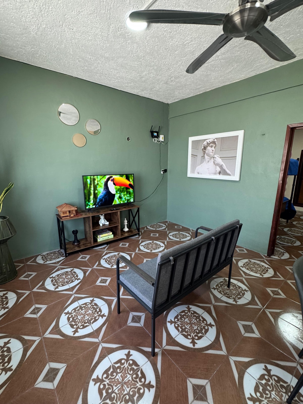 Entire home, just 25 minutes from Bacalar Lagoon, in the heart of Chetumal, on a corner of Colonia Campestre with beautiful ficus trees. Very close to the airport, Tren Maya, shopping mall, boulevard, restaurants, and Belize. Perfect for up to 3 guests, with 1 bedroom, 1 bathroom, TV room with sofa bed, equipped kitchen, elegant Louis XV living/dining room, terrace, patio, WiFi, TV, A/C, parking for 4 cars, security cameras, and safe.