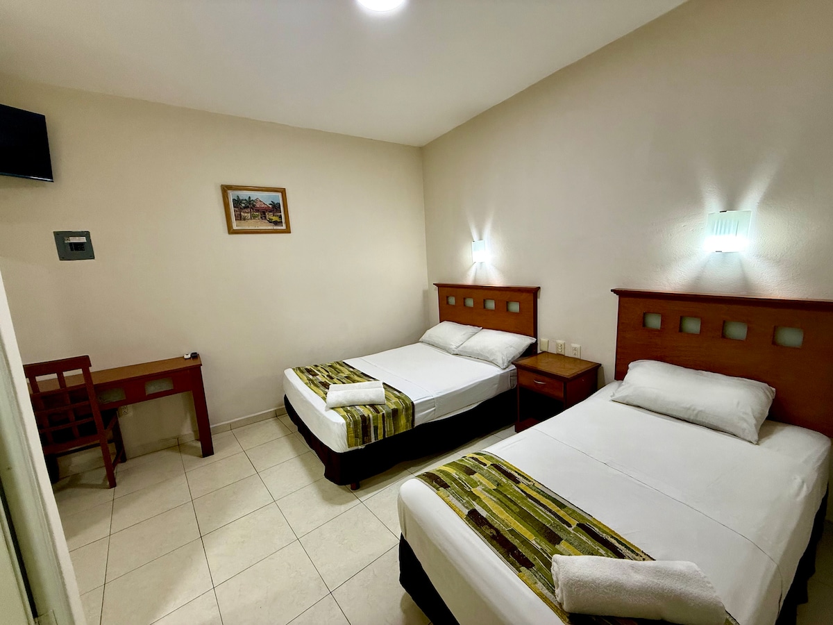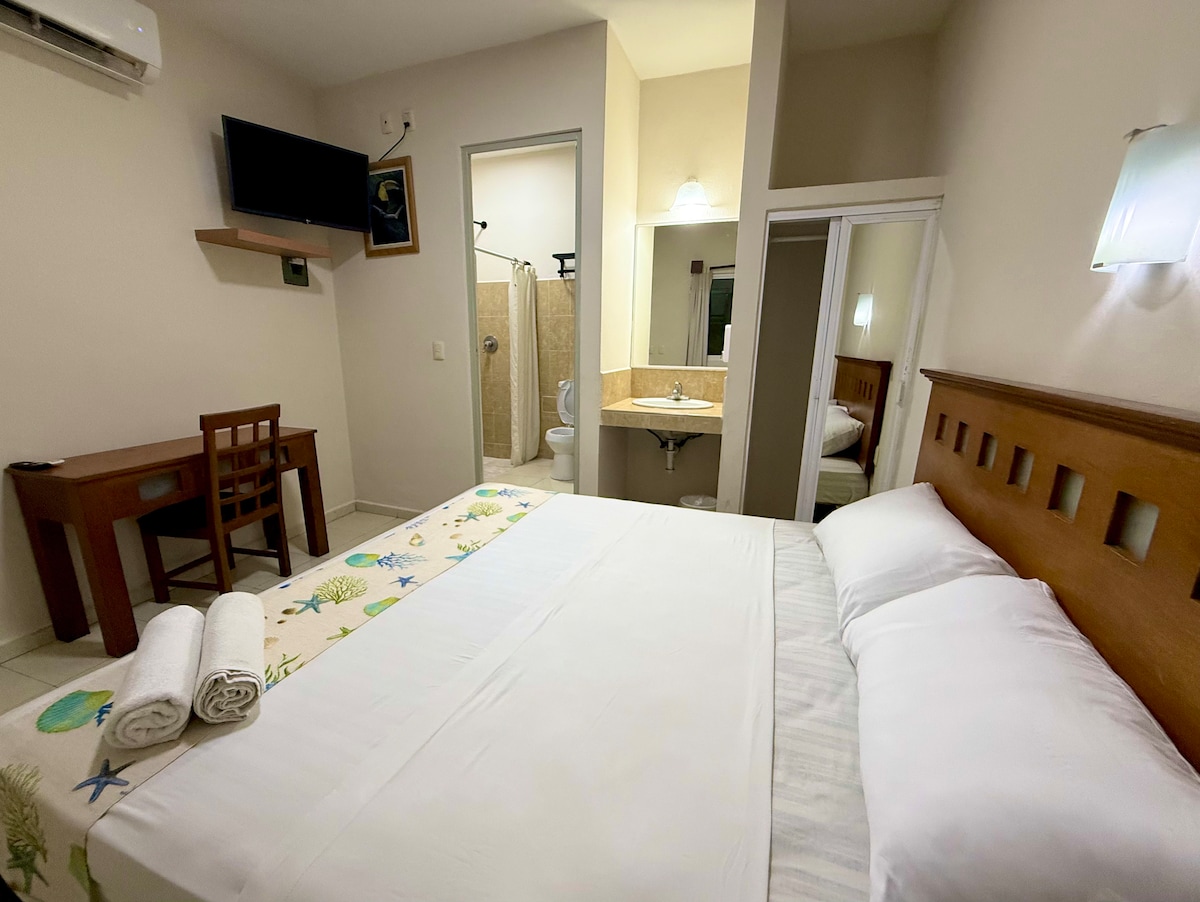 Hospédate en el Centro Histórico de Chetumal, dentro del primer Barrio Mágico de México. Un espacio cómodo y funcional construido sobre los cimientos del legendario Restaurante Pantoja, a pasos del Museo de la Cultura Maya, el primer Mercado de la ciudad y junto al sindicato de taxis. Habitación privada para 4 personas con dos camas matrimoniales, aire acondicionado, WiFi, Smart TV y baño privado. Acceso autónomo. ubicación para descansar cómodamente, moverte fácil y aprovechar la ciudad.